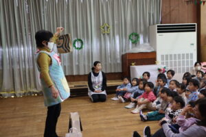 サンタさんが来てくれました。 2023年12月22日 最終更新日時 : 2023年12月22日 mitakenaka 発表会の後にサンタさんが来てくれました。 サンタさんに会えて嬉しそうな子ども達でした。ありがとうと言って一人ずつプレゼントをもらいましたよ。