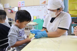 もうすぐ卒園する年長さんとのお別れ会をしました。お世話になった先生方のお話を聞いたりプレゼント交換をしました。