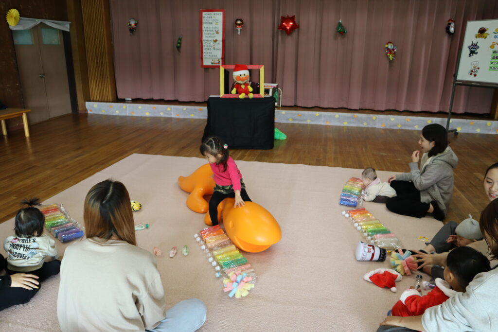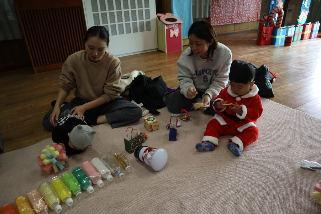 12月のたんぽぽ広場はクリスマス会を行いました。お楽しみのコーナーでは窓からのおくりものの絵本を見たり、当てっこクイズで遊んだりしました。サンタさんも来てくれて、プレゼントももらいましたよ!次回は1月8日です。お正月遊びをして遊びます。ぜひ、お誘い合わせのうえご参加ください!