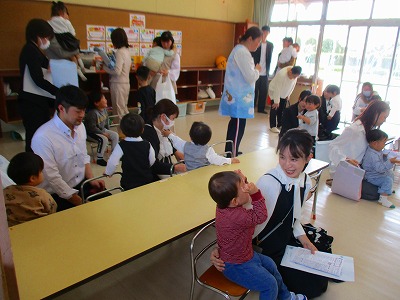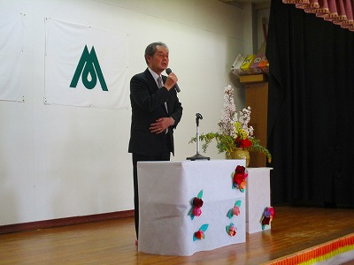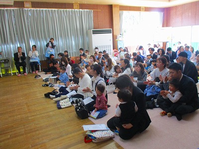 4月6日(月)に入園・進級式を行いました。今年は15名の園児が新しく加わり、62名でのスタートです。1部の4・5歳児は、御嵩町長の渡辺幸伸様より祝辞をいただきました。町長さんの声かけに、子ども達は元気よく「ありがとうございます。」と応えていました。3歳児以下対象の2部は、第三学園の杉山一夫理事長より挨拶をいただきました。家族と一緒の入園・進級式。どの子も嬉しそうでした。