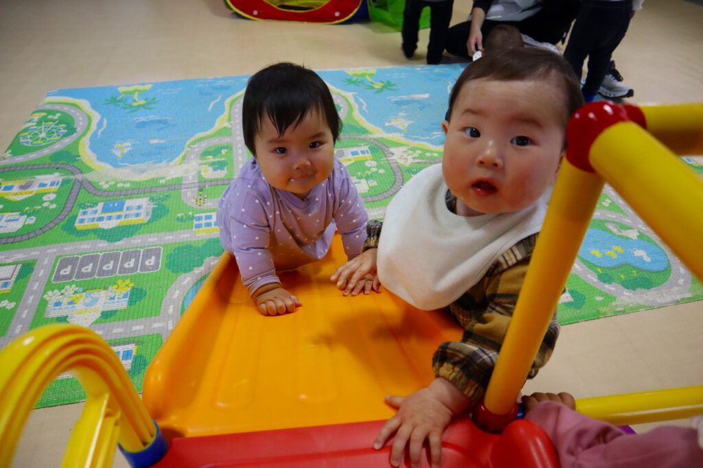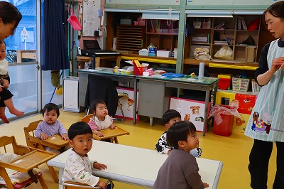 0・1・2歳のいちご・さくらんぼ組は、おやつを食べてから遊びます。