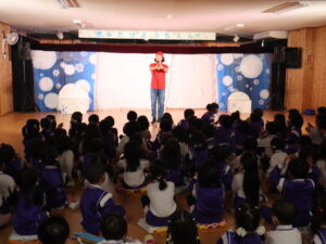 今日は12月生まれ16名の誕生児のお祝いをしました。一人ひとり堂々と発表することが出来、おともだちの大きくなったらどんな人になりたいかの質問もよく聞いていました。お楽しみは、はらぺこあおむしのパネルシアターでした。子ども […]