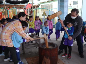 12月入園のお友だちの誕生会を行いました。名前や年齢、大きくなったらどんな人になりたいかを、インタビューしながら答えてくれました。家族の方からのお手紙を嬉しそうに聞いていました。大型絵本ではみんなで車の真似をしながら楽し […]