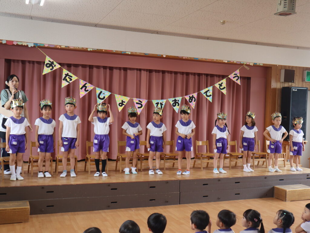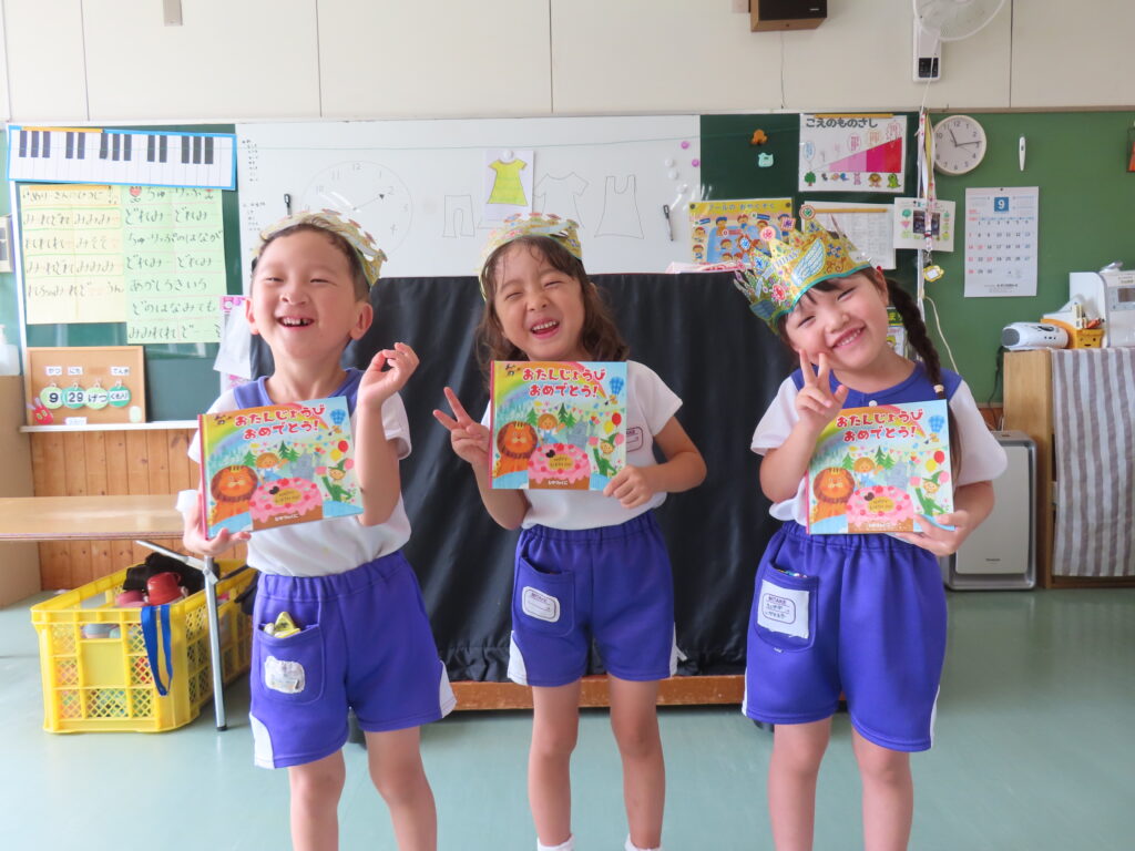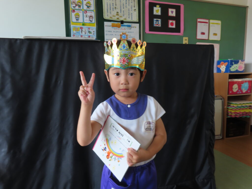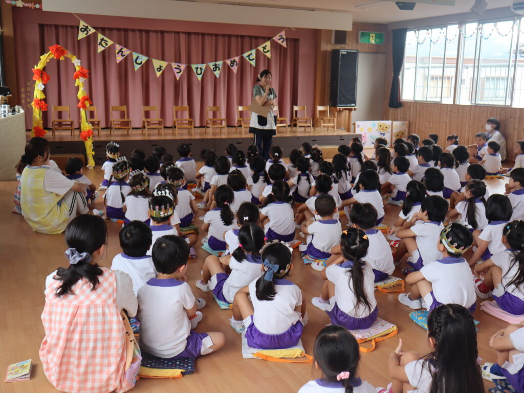 9月29日に、9月生まれのお友達の誕生会を行いました。冠をかぶって、嬉しそうな姿可愛いですね!!先生からのお楽しみはパネルシアターの「どこどこアンディちゃん、へびつかいとかくれんぼ」でした。子どもたちは一緒に手拍子を打ったり、一緒に考えたりと参加しながらパネルシアターを楽しみました。