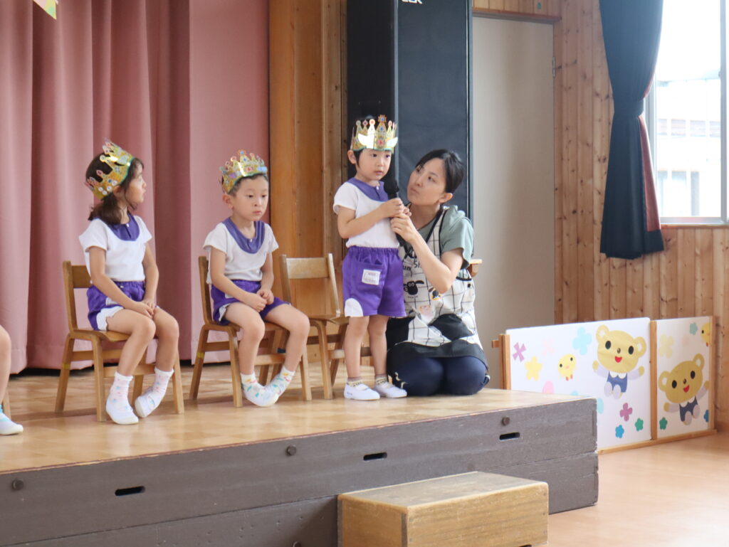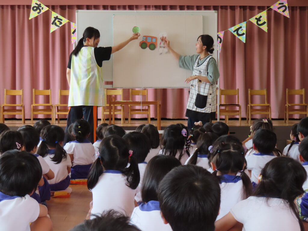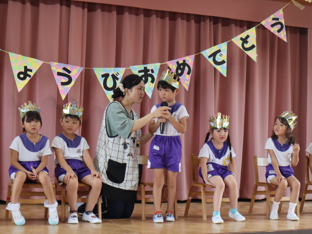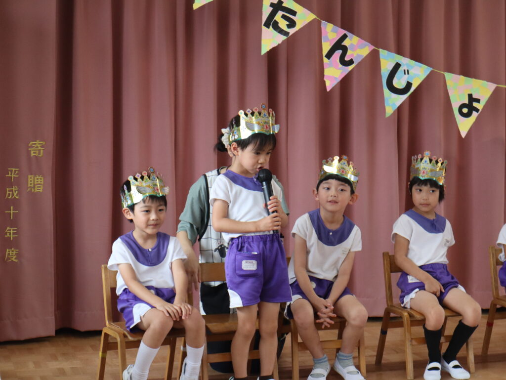 9月29日に、9月生まれのお友達の誕生会を行いました。冠をかぶって、嬉しそうな姿可愛いですね!!先生からのお楽しみはパネルシアターの「どこどこアンディちゃん、へびつかいとかくれんぼ」でした。子どもたちは一緒に手拍子を打ったり、一緒に考えたりと参加しながらパネルシアターを楽しみました。