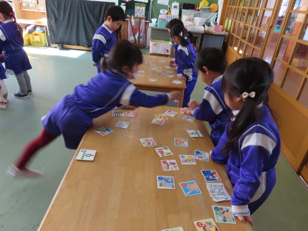 1月16日に行う、かるた会の為にクラスでかるた遊びが始まりました。