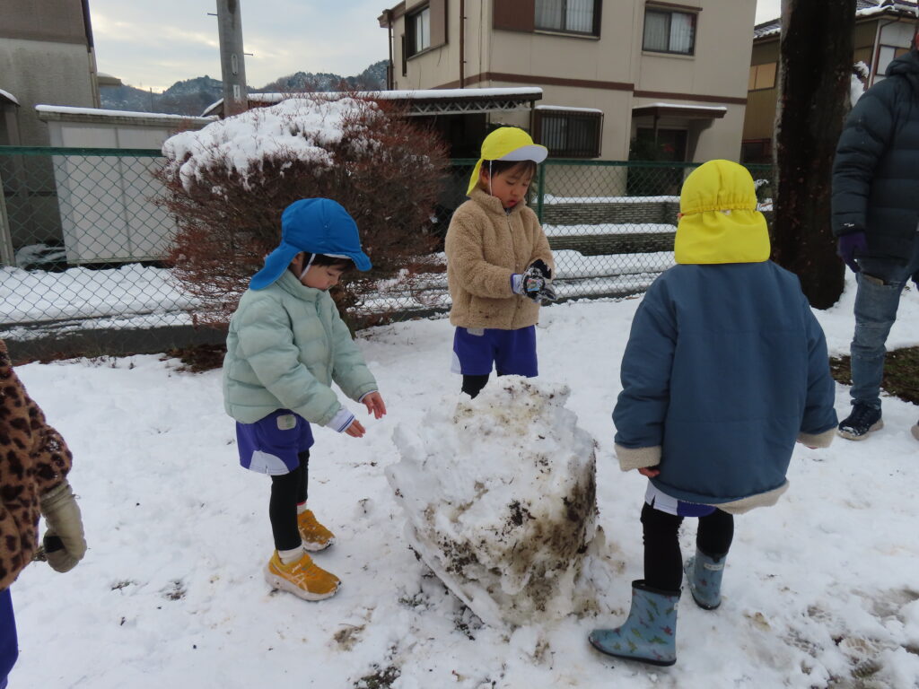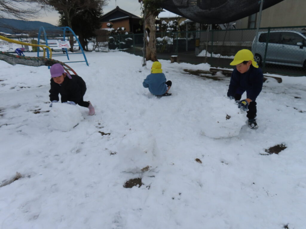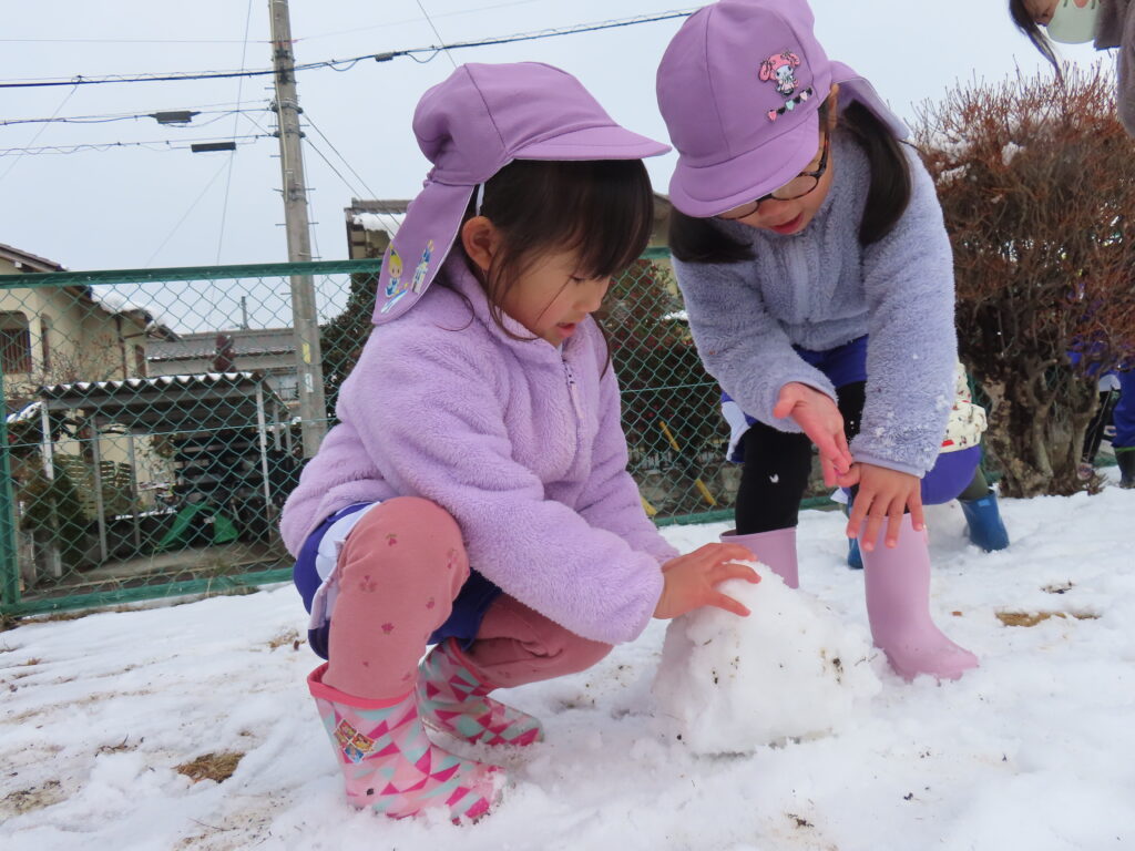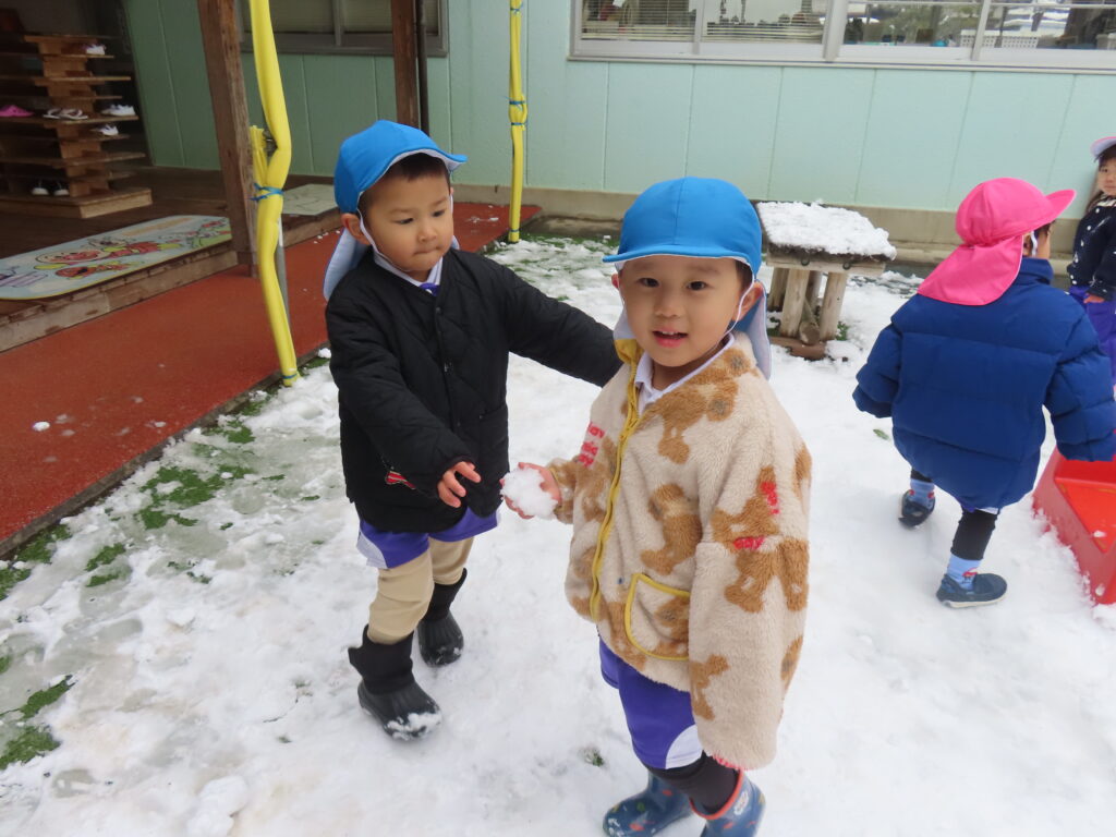 昨日の雪が園庭に残っていたので朝から子どもたちは雪遊びを楽しみました!!