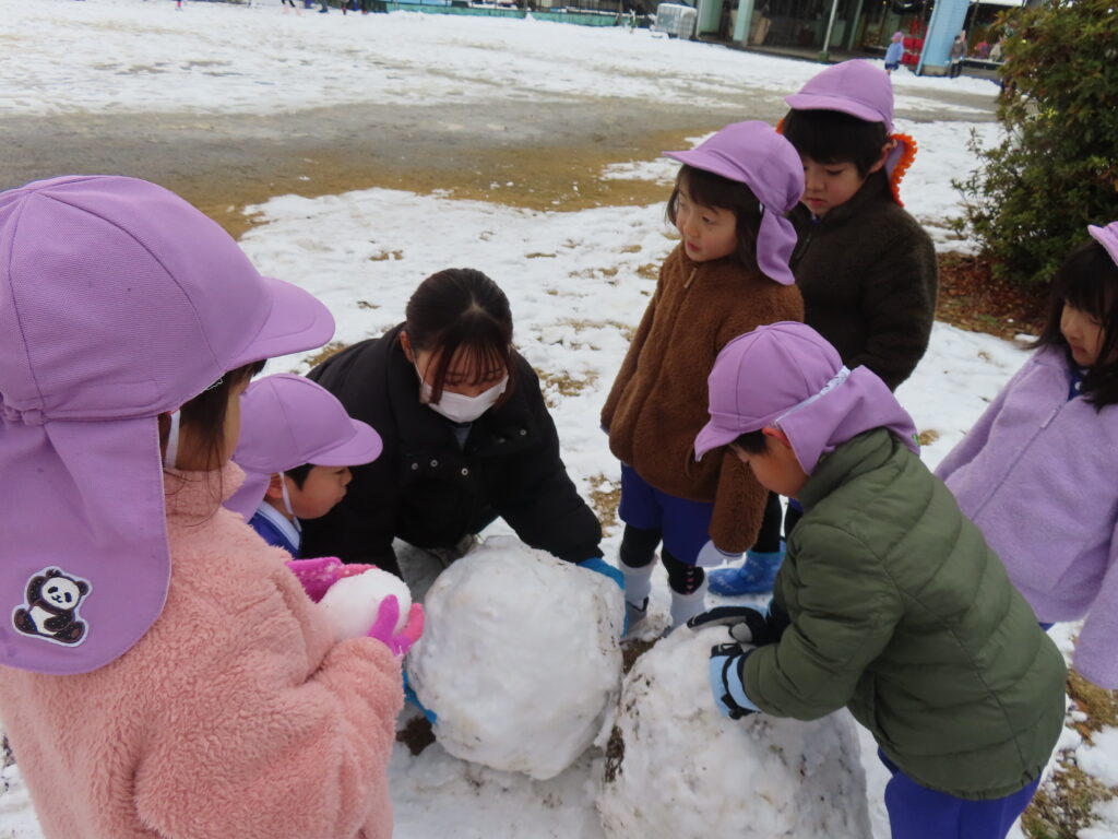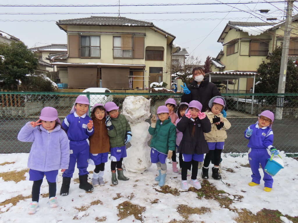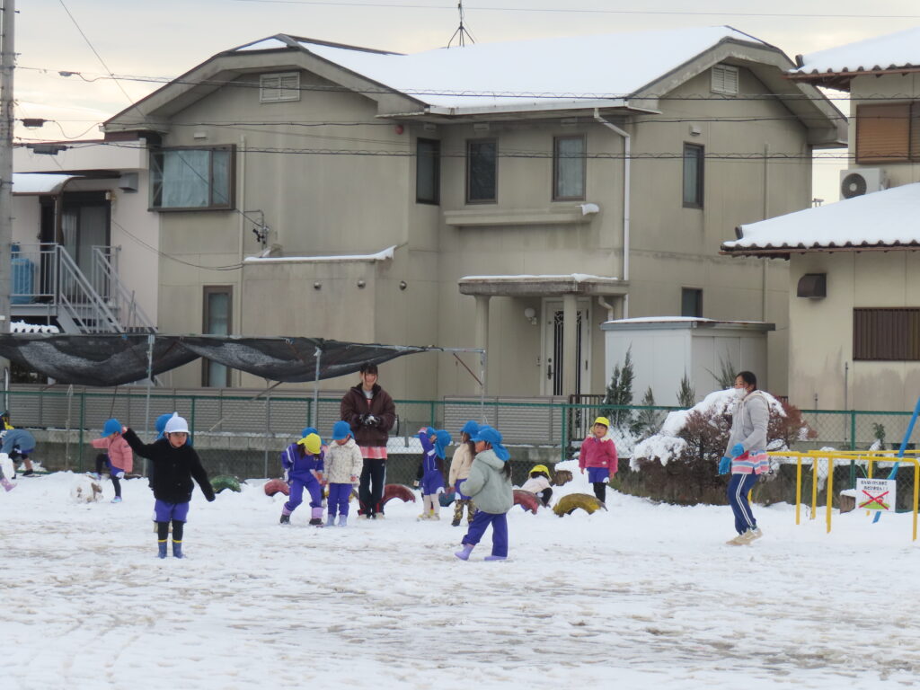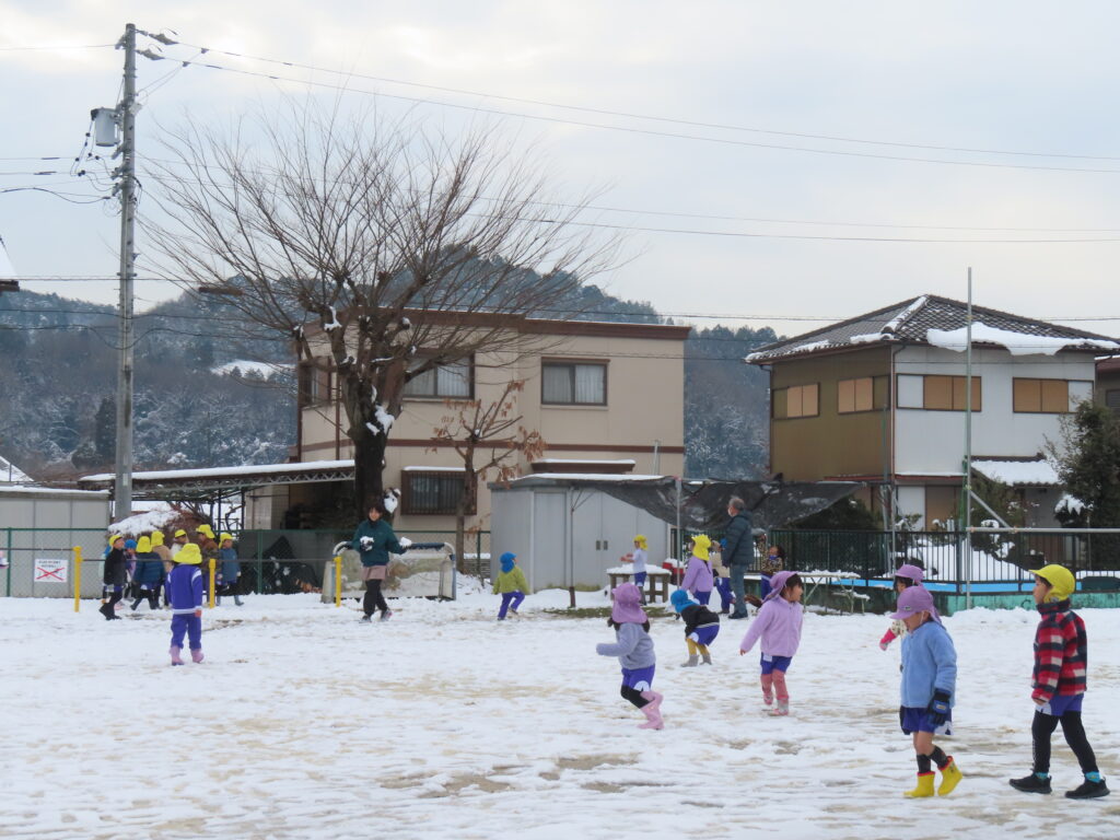 昨日の雪が園庭に残っていたので朝から子どもたちは雪遊びを楽しみました!!