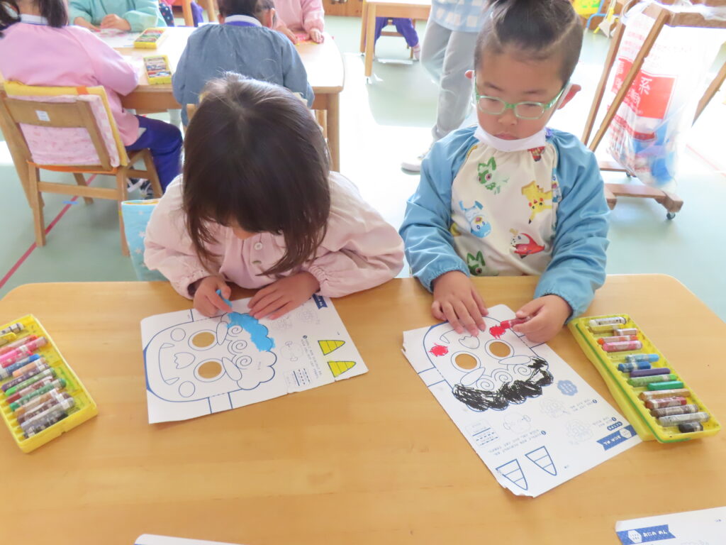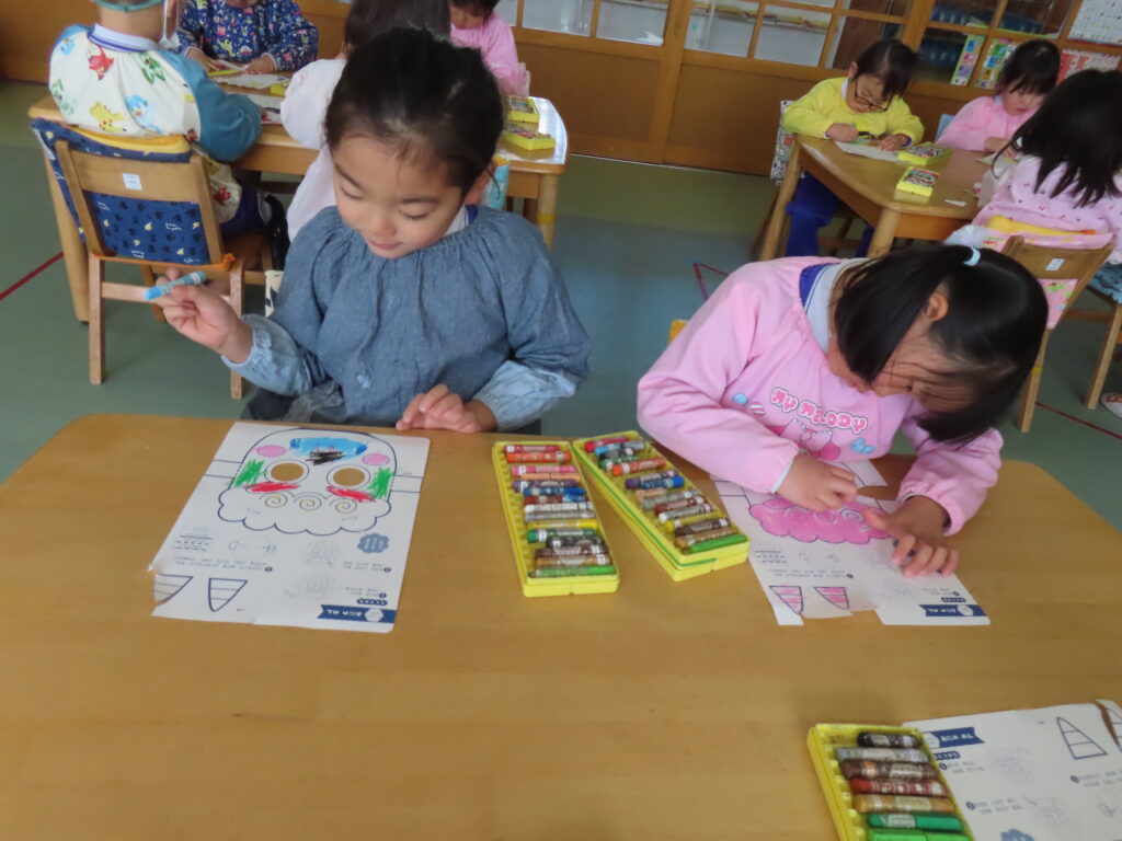鬼のお面作り 2026年1月29日 最終更新日時 : 2026年1月29日 mitakeed 2月3日の節分を前に鬼のお面作りが各クラスで始まりました。「かっこいい鬼にしよ!」「かわいい鬼にしようかな」と、好きな色を使って鬼のお面が仕上がりました。節分の日は鬼のお面をかぶって心の鬼をみんなで退治しようね!!