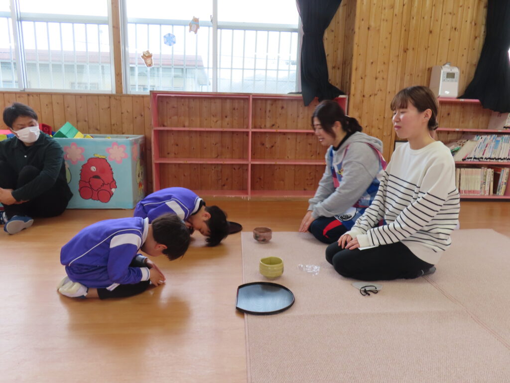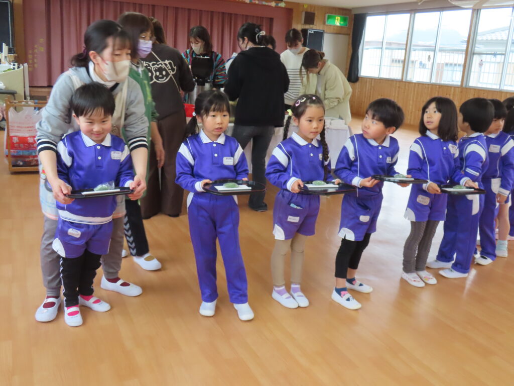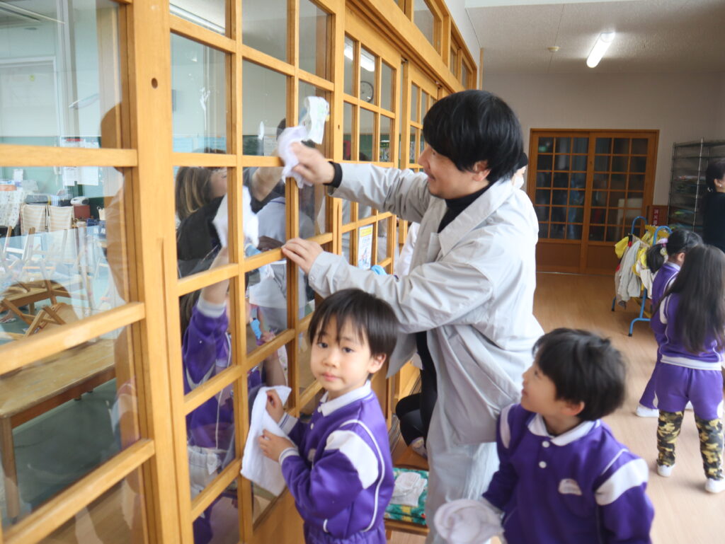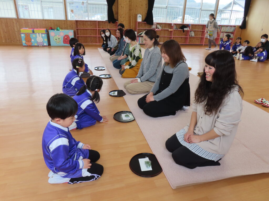 年長組の家庭教育学級で、お茶会・親子清掃が行われました。お茶会では少し照れながらも「いつもありがとう」と伝え、美味しそうに頂いている保護者の顔をじっくりと見ている姿がありました。親子清掃では、隅々まで掃除をしてくださりありがとうございました。最後は子どもたちから歌と手紙のプレゼント。残りあと少しになってきましたが園生活をみんなと楽しみたいと思います。