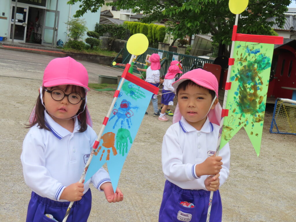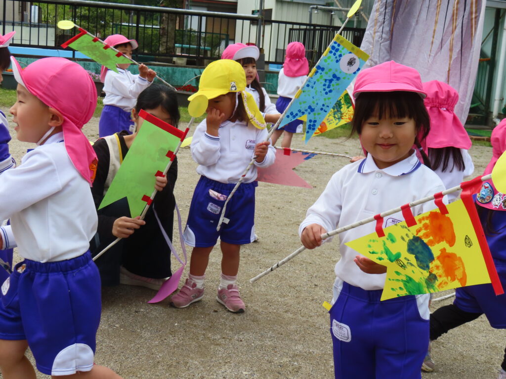 こいのぼりをつくったよ(年少) 2026年4月25日 最終更新日時 : 2026年4月25日 mitakeed ゆり組さんもこいのぼりを作りました。可愛い手形をうろこに見立て素敵なこいのぼりが出来ました。早速こいのぼりを手に持ち園庭をかけまわり泳がせていましたよ!!