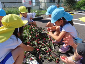 遠足ごっこ 2025年5月22日 最終更新日時 : 2025年5月23日 unuma1ed 22日(木)に遠足ごっこをしました。果物の色塗りをしたり、幼稚園の中で果物狩りをしたりと楽しみました。園庭でおにぎりを食べ遠足気分を味わうことができ蒔いた。