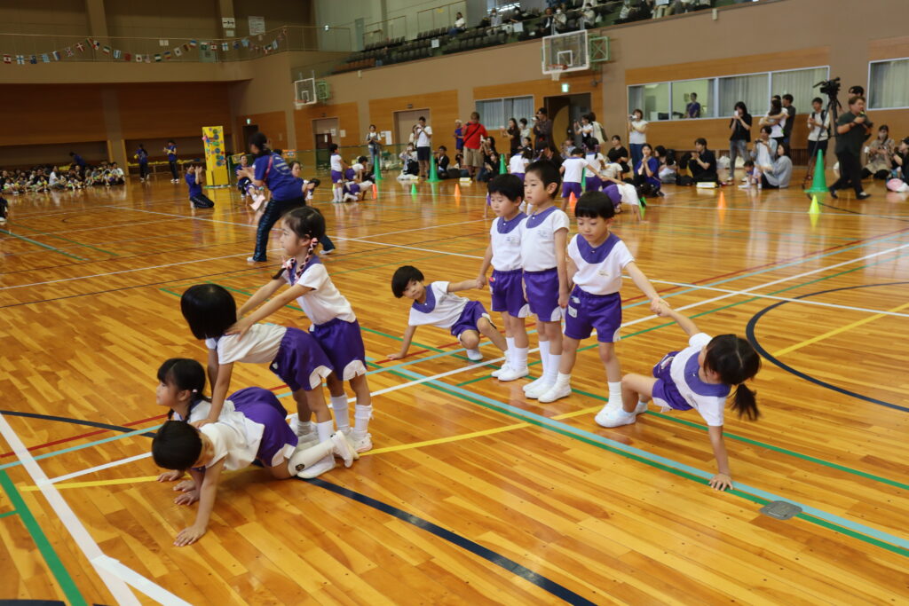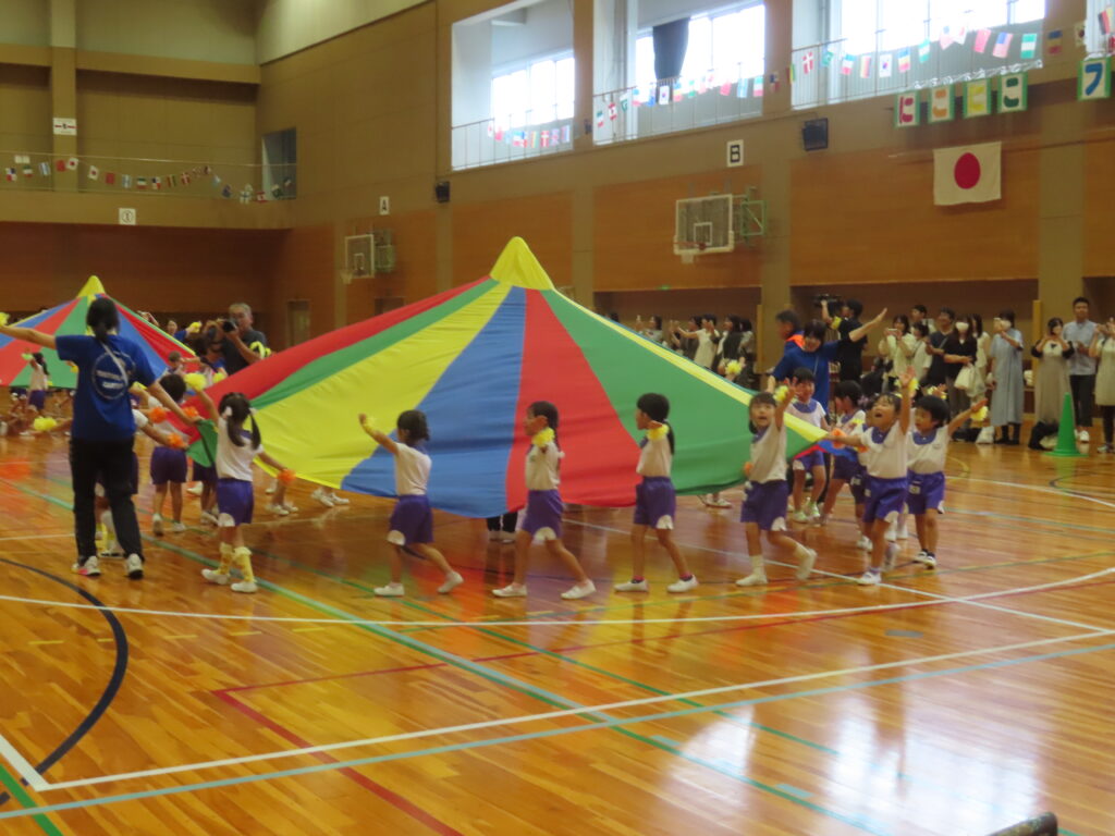 鼓笛やパラバルーン、組体操やお遊戯は練習の成果をおうちの方に見てもらう喜びで、みんな、にこにこ笑顔。