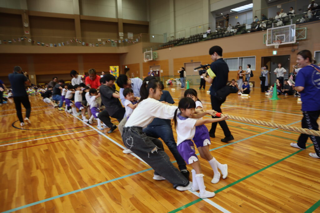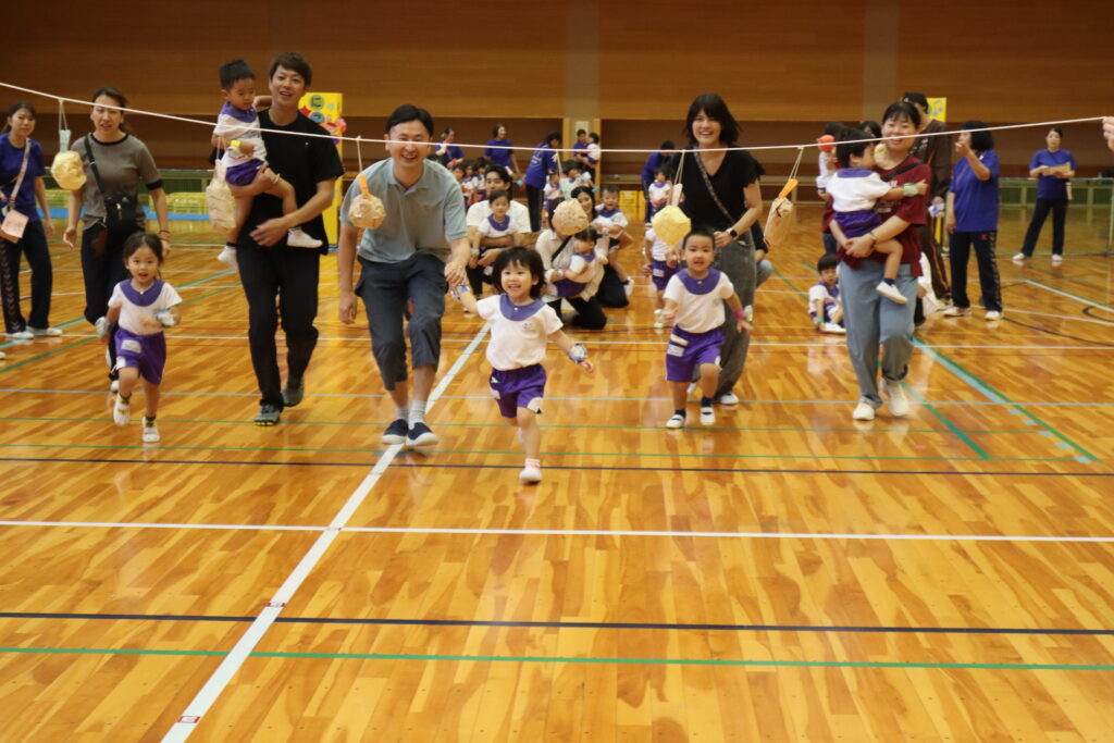 親子競技では、おうちの方と一緒に体を動かし、甘えることができ、にこにこ笑顔。たくさんの笑顔があふれたにこにこフェス.でした。
