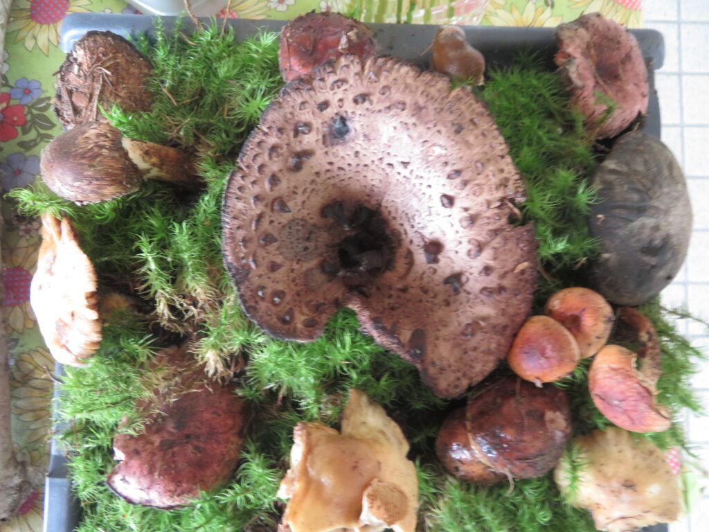 玄関ホールに、たくさんの種類のきのこが!!名前わかるかな?食べられるのかな?調べてみてね。