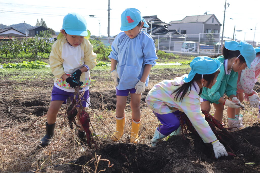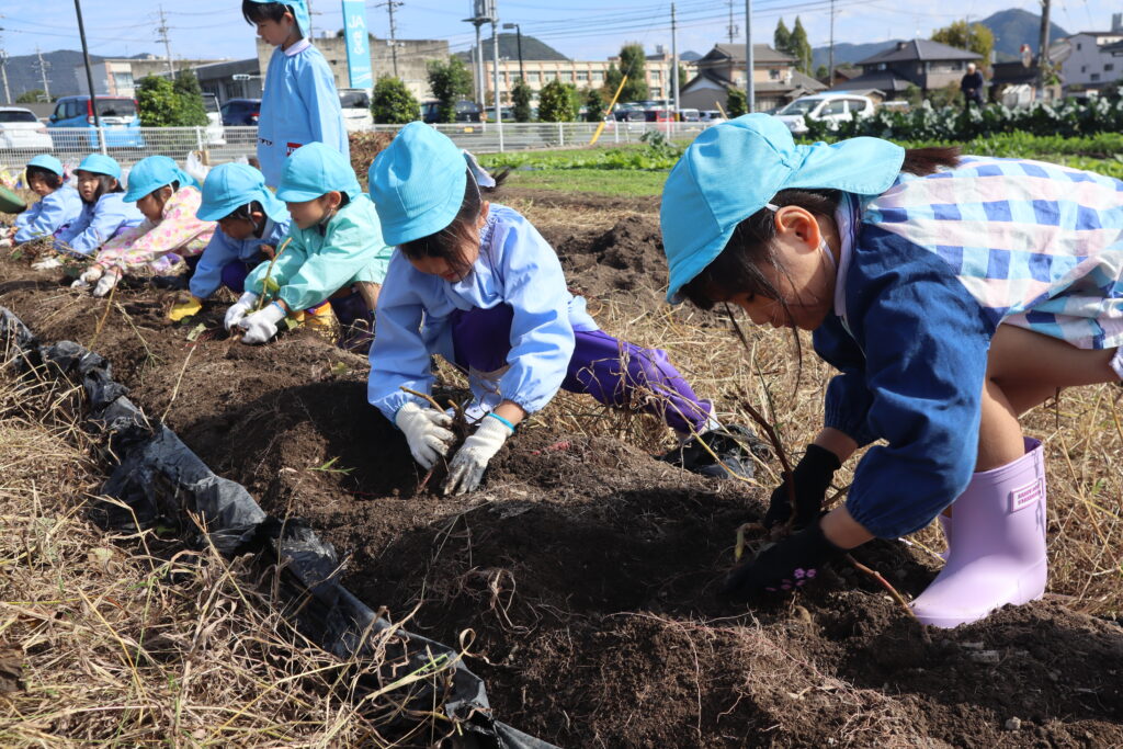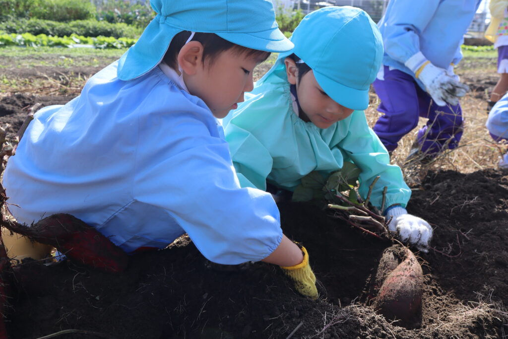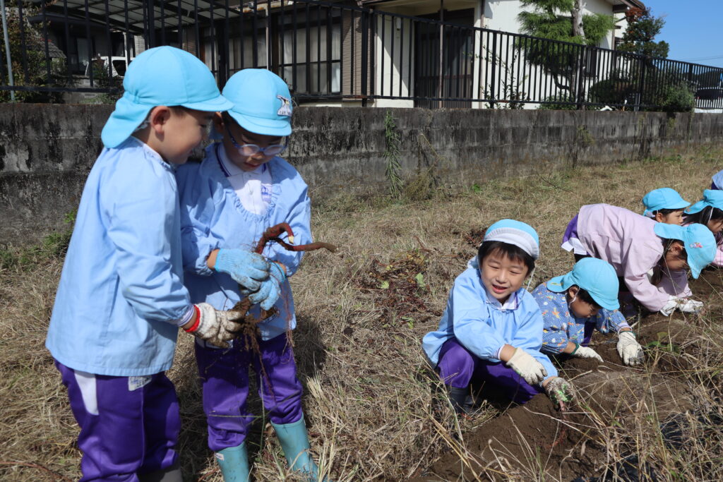 芋掘り くま組 2025年10月29日 最終更新日時 : 2025年10月29日 unuma1ed くま組のお友だちが、芋ほりに行きました。土の感触や、お芋を掘る楽しさを体験しました。大きいお芋から小さいお芋までたくさんあり、掘るのが難しい時はお友だちや、先生と一緒に掘る達成感を味わい、たくさん掘る事ができました。