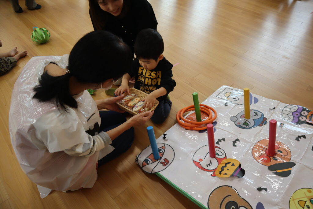 イルカくらぶ・おひさまひろば ハロウィンパーティー 2025年10月31日 最終更新日時 : 2025年10月31日 unuma1ed 今日は「ハロウィンを楽しもう」で蜘蛛の巣をくぐったり、ボールを投げてオバケをやっつけたり、輪投げをして楽しみました。どのコーナーも楽しんでいるお友だちの姿が見られ嬉しかったです。大勢のお友だちと楽しい時間が過ごせました♪