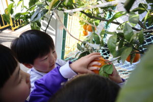 園庭で秋見つけをしました。様々な色の落ち葉を見つけることができました。