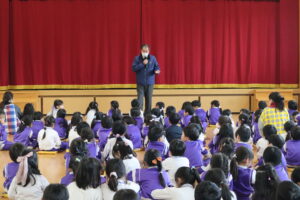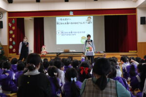 27日(月)にくま組のお友だちが木育教室に参加しました。木育教室の宮川先生指導の下、木のカスタネットを作りました。素敵な音色のカスタネットができましたよ。