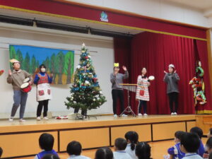 緑陽中学校のお兄さんお姉さんが職場体験に来てくれました。たくさん一緒に遊ぶことができ、大喜びの子どもたちでした。