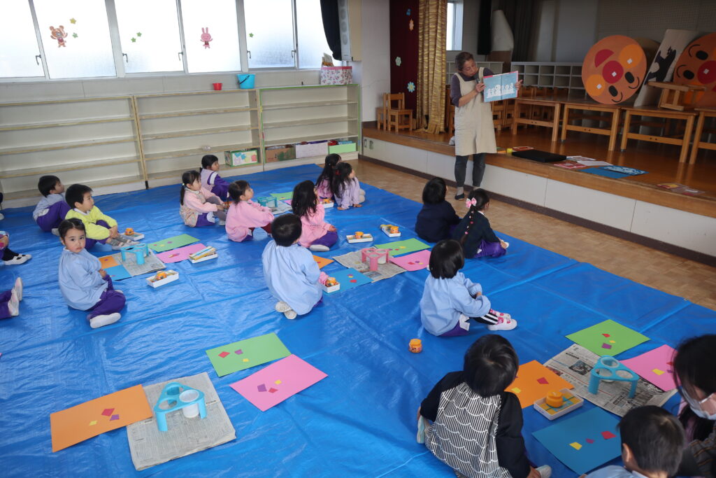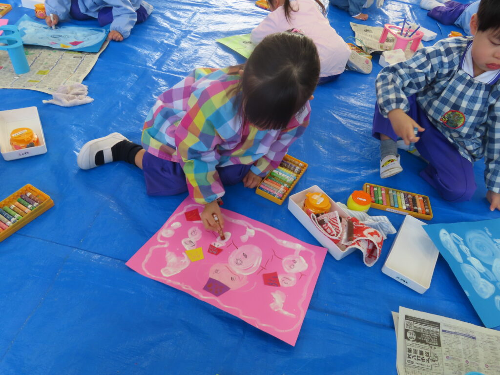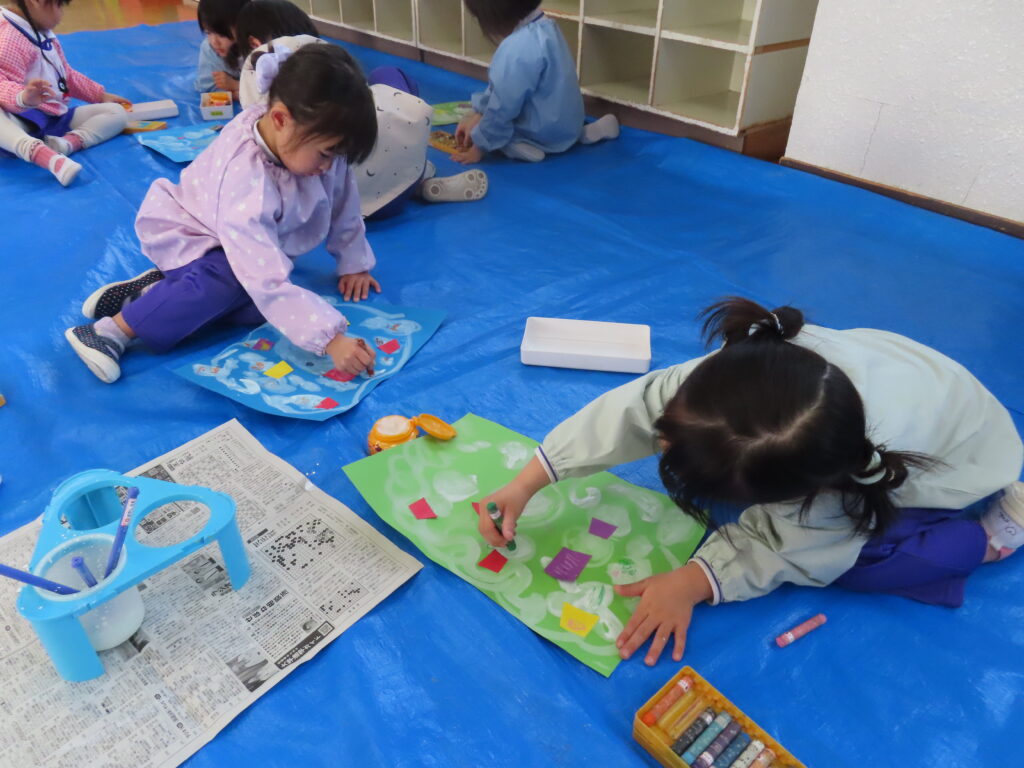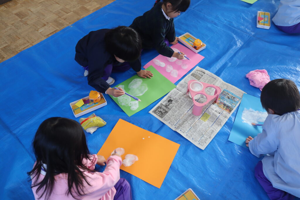 絵画あそび 年少 2026年1月20日 最終更新日時 : 2026年1月22日 unuma1ed りす組のお友だちが絵画あそびを行いました。「ゆきだるまのきもち」のお話を聞いて、白い絵の具でゆきだるまを描きました。絵本に出てくる滑り台や怪獣を描いたりゆきだるまと一緒に遊ぶ自分をイメージして描いたり楽しく活動できました。