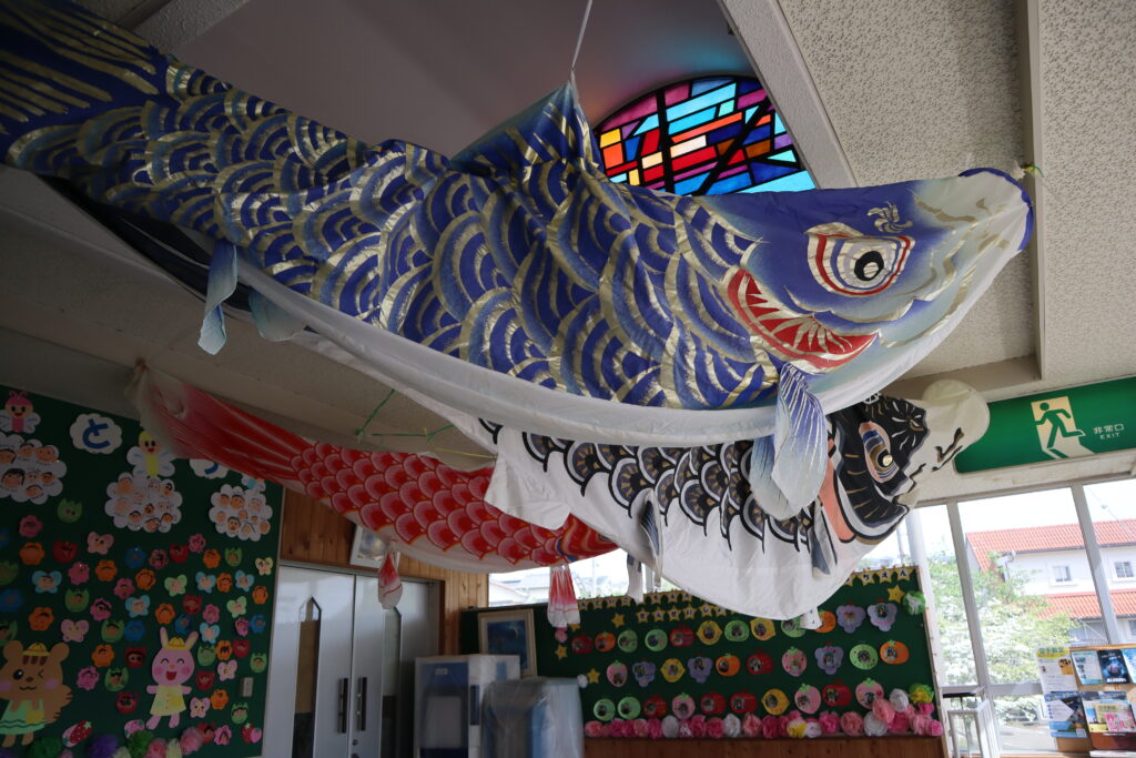 子ども達の健やかな成長を願って玄関ホールに大きなこいのぼりを飾りました。