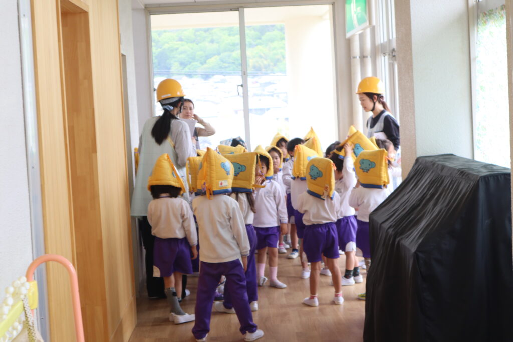 避難訓練 2026年4月22日 最終更新日時 : 2026年4月23日 unuma1ed 今年度最初の避難訓練。避難に関するお話を聞いたり、お約束の確認をしたり、真剣に話を聞くことができました。また、防災クッションをかぶって、避難経路の確認もしました。