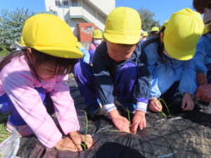 うさぎ1組のお友だちが玉ねぎの苗植を行いました。うさぎ2組のお友だちと一緒にお世話をしながら、成長を楽しみたいです。