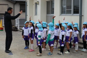 りす・ひよこ組さんでは、「からだダンダン」の曲に合わせてみんなで元気いっぱい身体を動かし、体操をしています。みんなノリノリで楽しんでいますよ♪