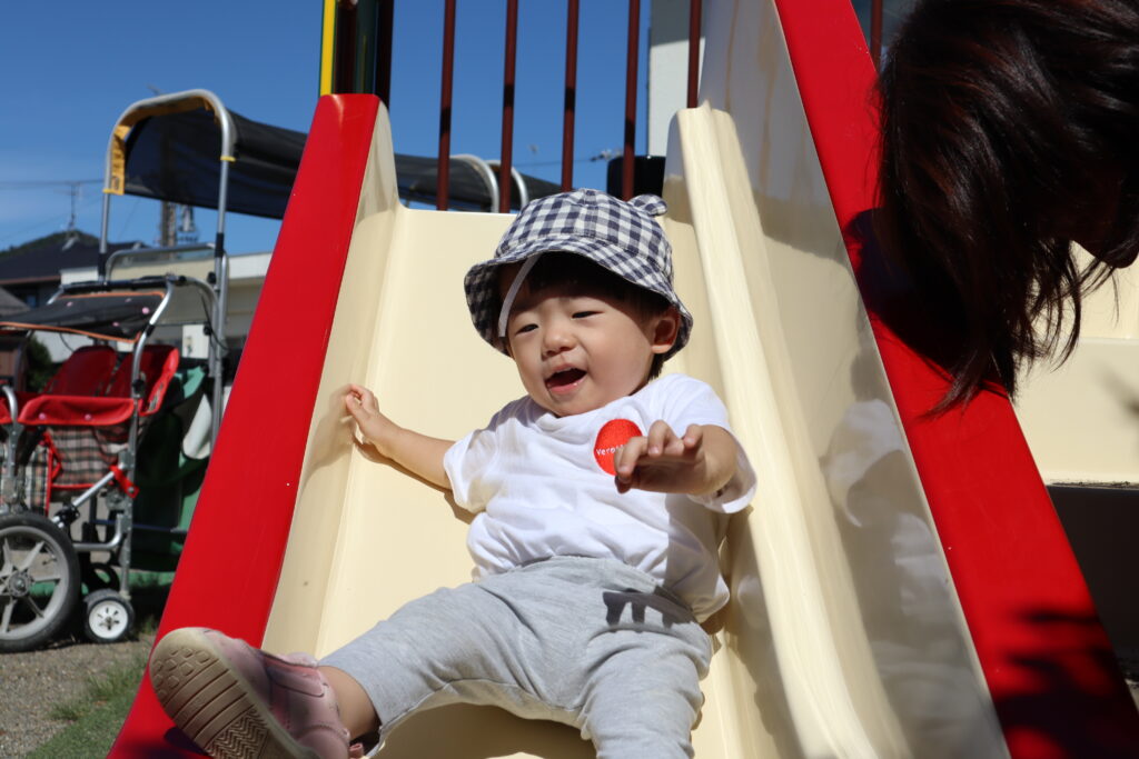 外遊び(りす・ひよこ組) 2025年9月30日 最終更新日時 : 2025年9月30日 unumaeast りす・ひよこ組はすべり台やブランコ、お砂場で遊びました。すべり台では、先生に支えられながらも自分で一生懸命登り、すべってを繰り返しており、楽しくすべっていました。ブランコは揺れる心地よさを感じながら楽しんで乗っていました。砂遊びはもちろん、走って遊んだりとたくさん身体を動かして遊ぶ事出来ていました。