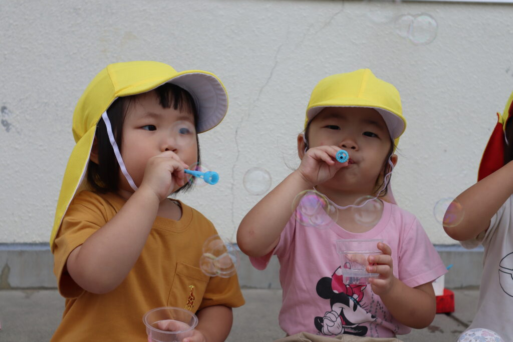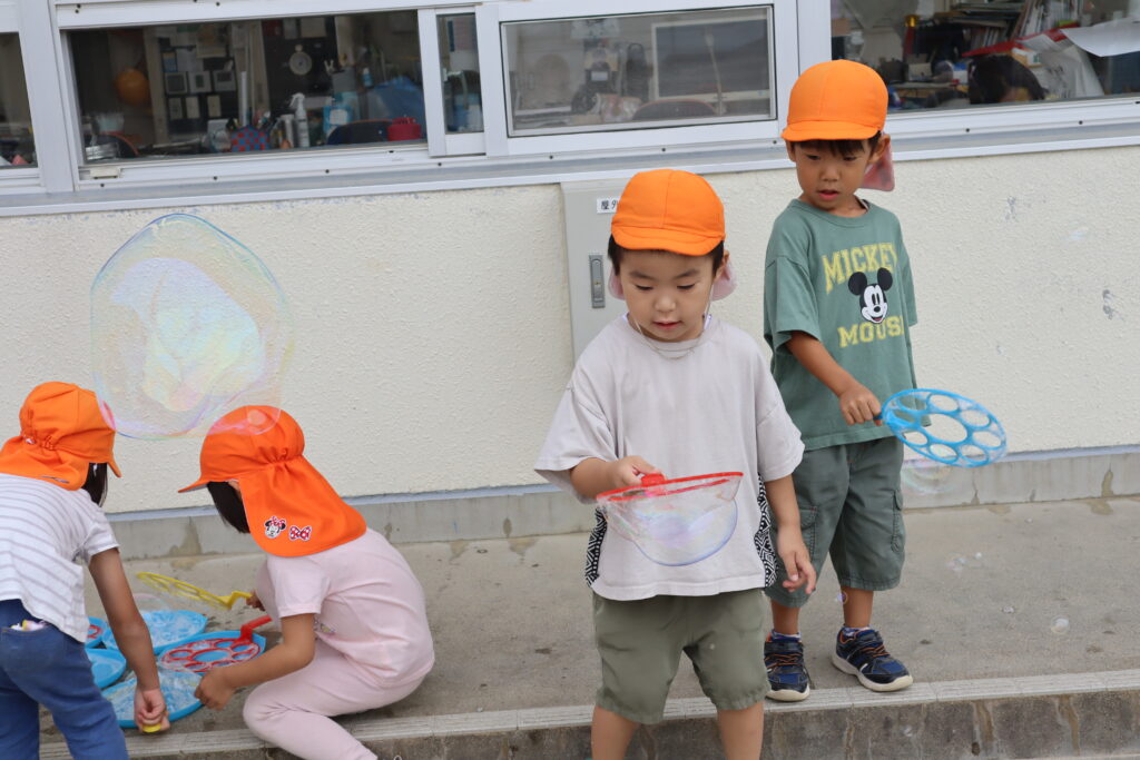 しゃぼん玉も大きく作る事に一生懸命になって作っていました。