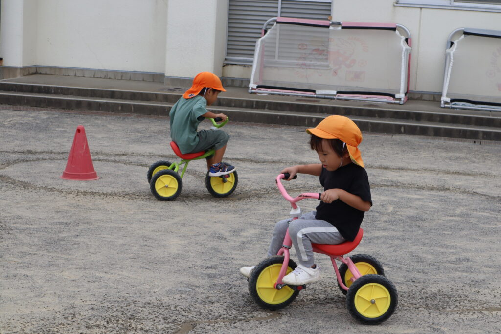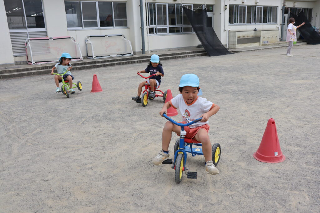 三輪車はコースをくねくねさせて競争したりとみんなで競い合っていました。