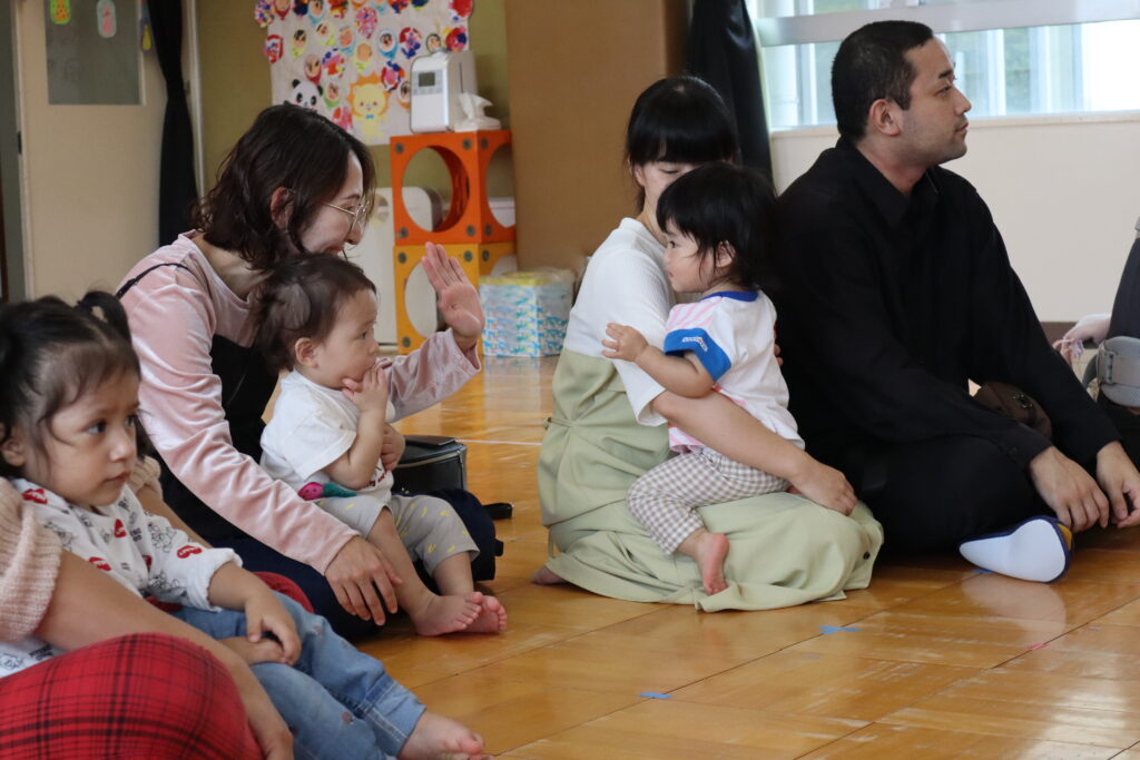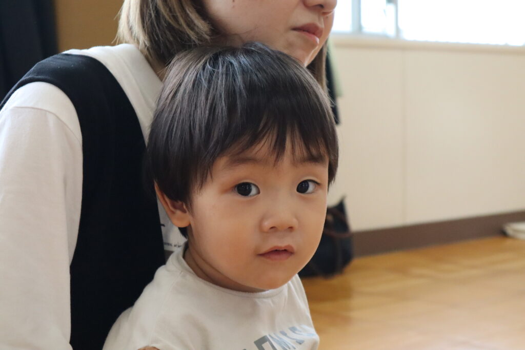 「ばすにのって」や、お母さんと触れ合う遊びの時は少し緊張する子もいましたが、