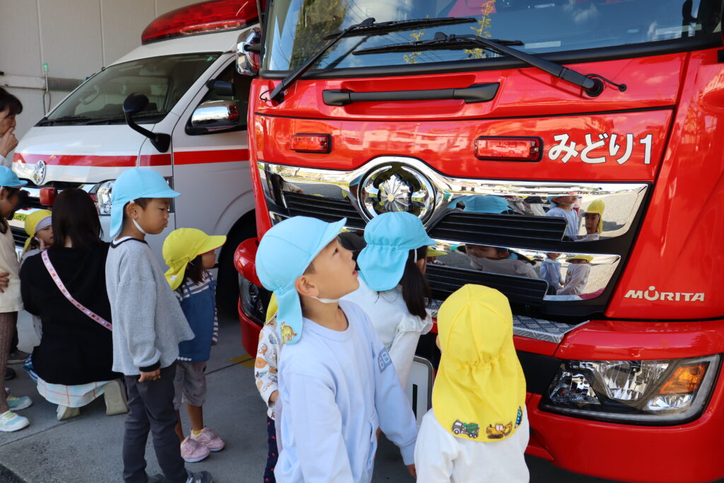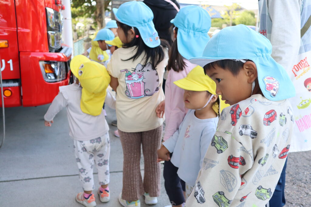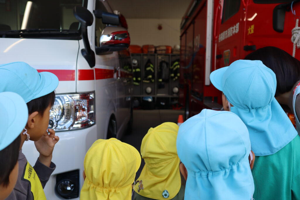 消防署に行ったよ 2025年10月29日 最終更新日時 : 2025年10月29日 unumaeast 今日はらいおん組さんとうさぎ組さんで近くの消防署まで手を繋いでお散歩しました。うさぎ組さんをリードして歩くらいおん組さんの姿はとても頼もしかったです。近くで見るととても大きく皆目を輝かせて楽しんでみていました。帰りも横断するとき手を挙げてうさぎ組さんをリードし、最後まで怪我無く帰ってこれました。