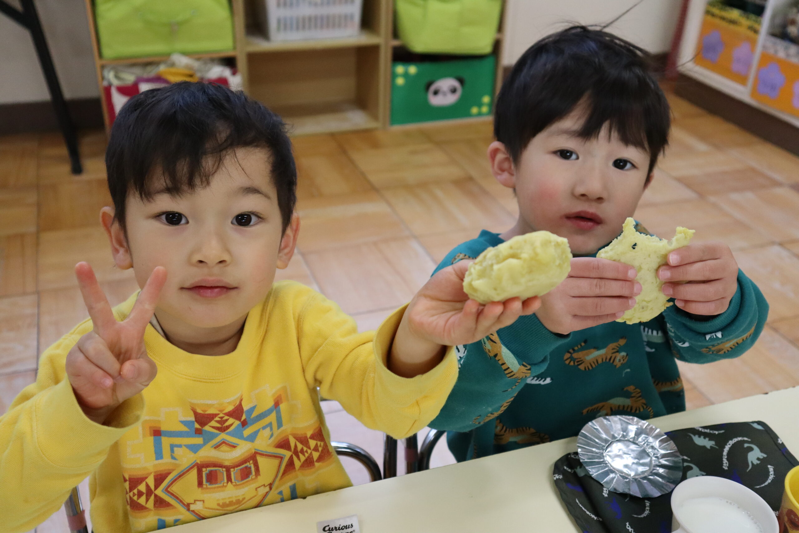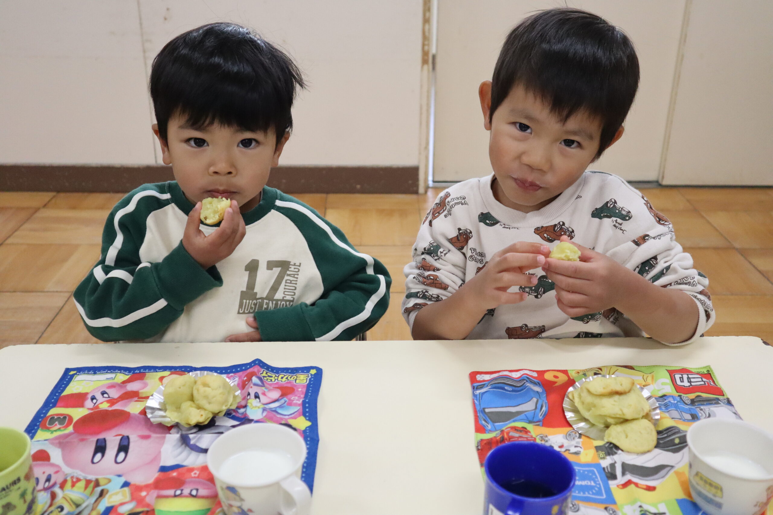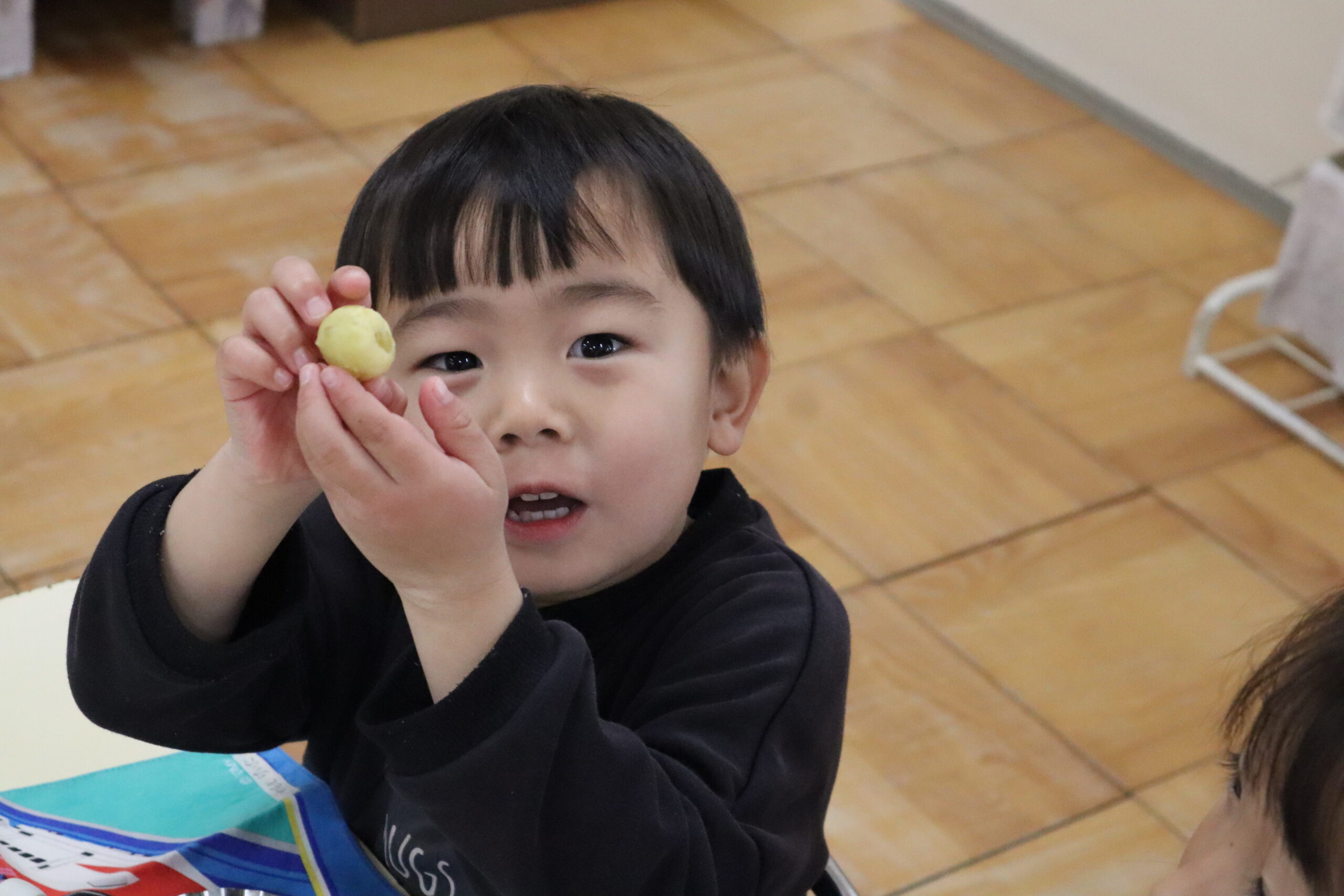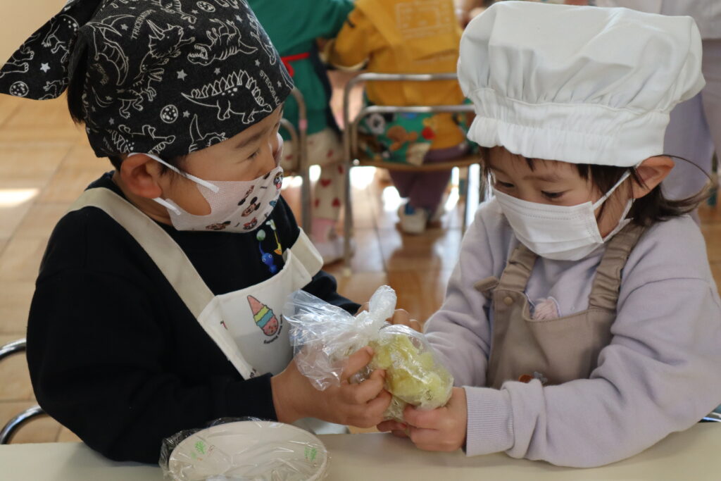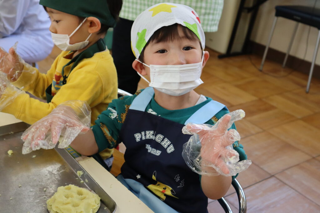 クッキング(ぱんだ組) 2025年12月16日 最終更新日時 : 2025年12月17日 unumaeast 今日ぱんだ組はスイートポテトをしました。各グループに分かれ、自分たちで作りました。袋の上からさつまいもを潰したり、丸めたりしながら感触を楽しんで作る事が出来ました。自分たちで作ったスイートポテトを食べると、「おいしい!」と笑顔が溢れていました。