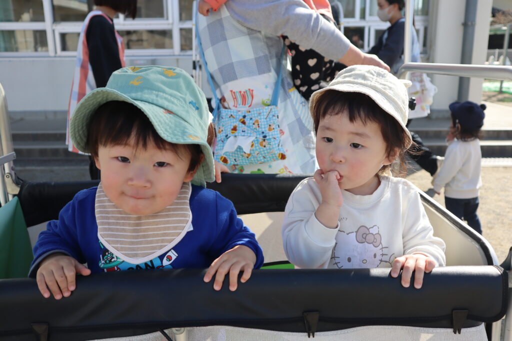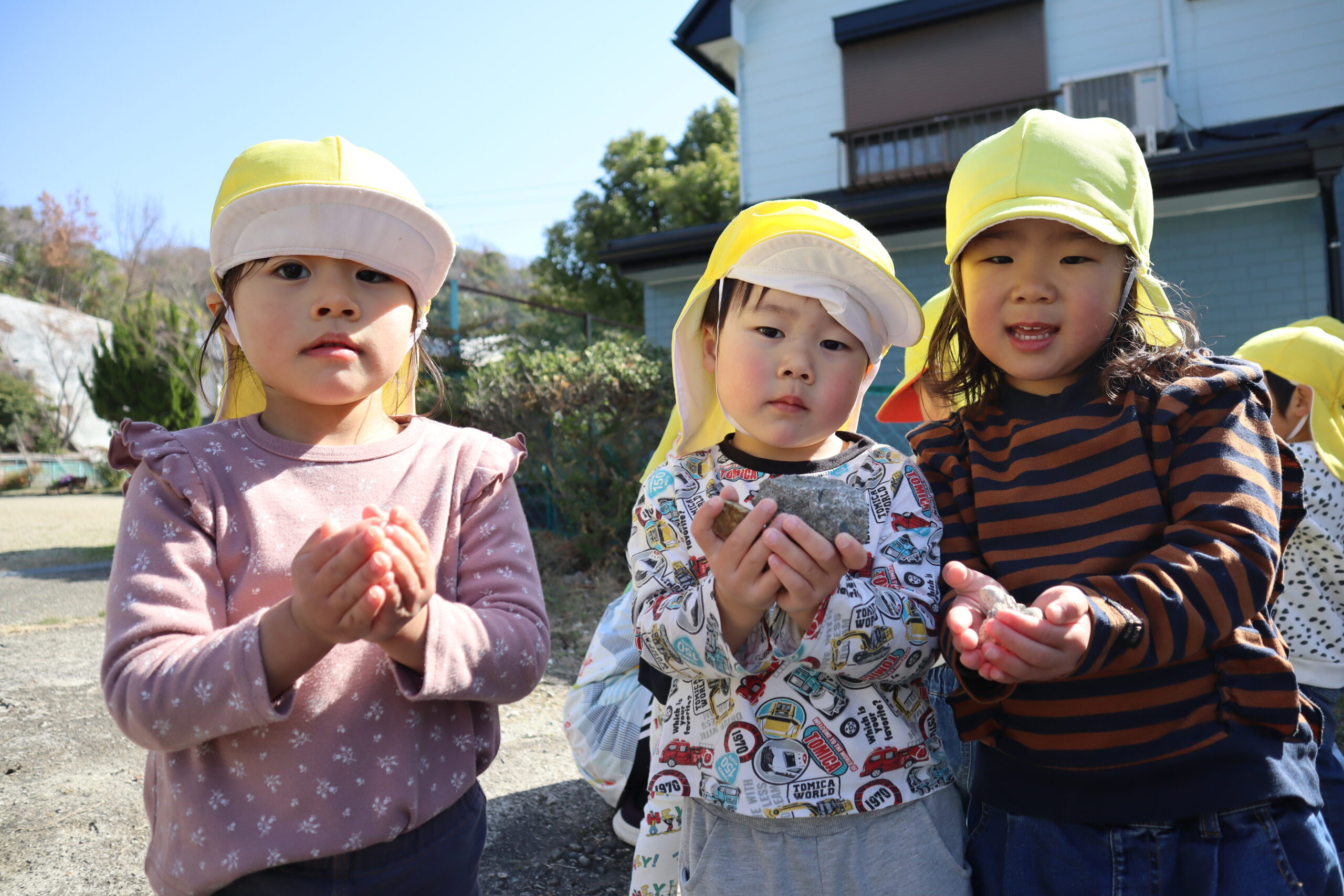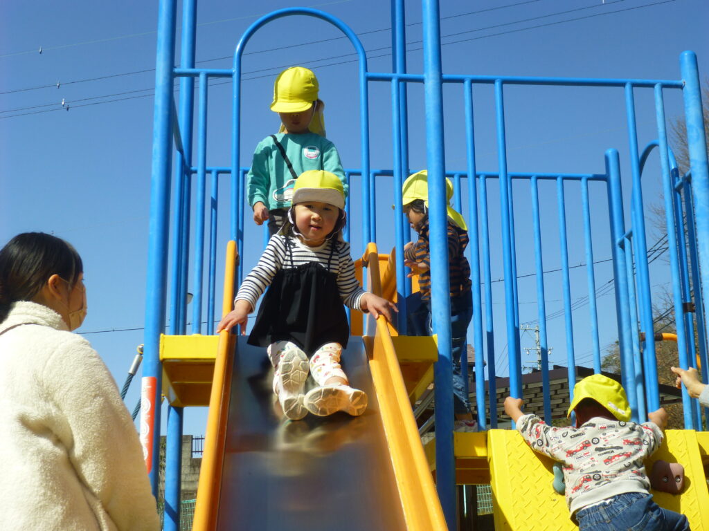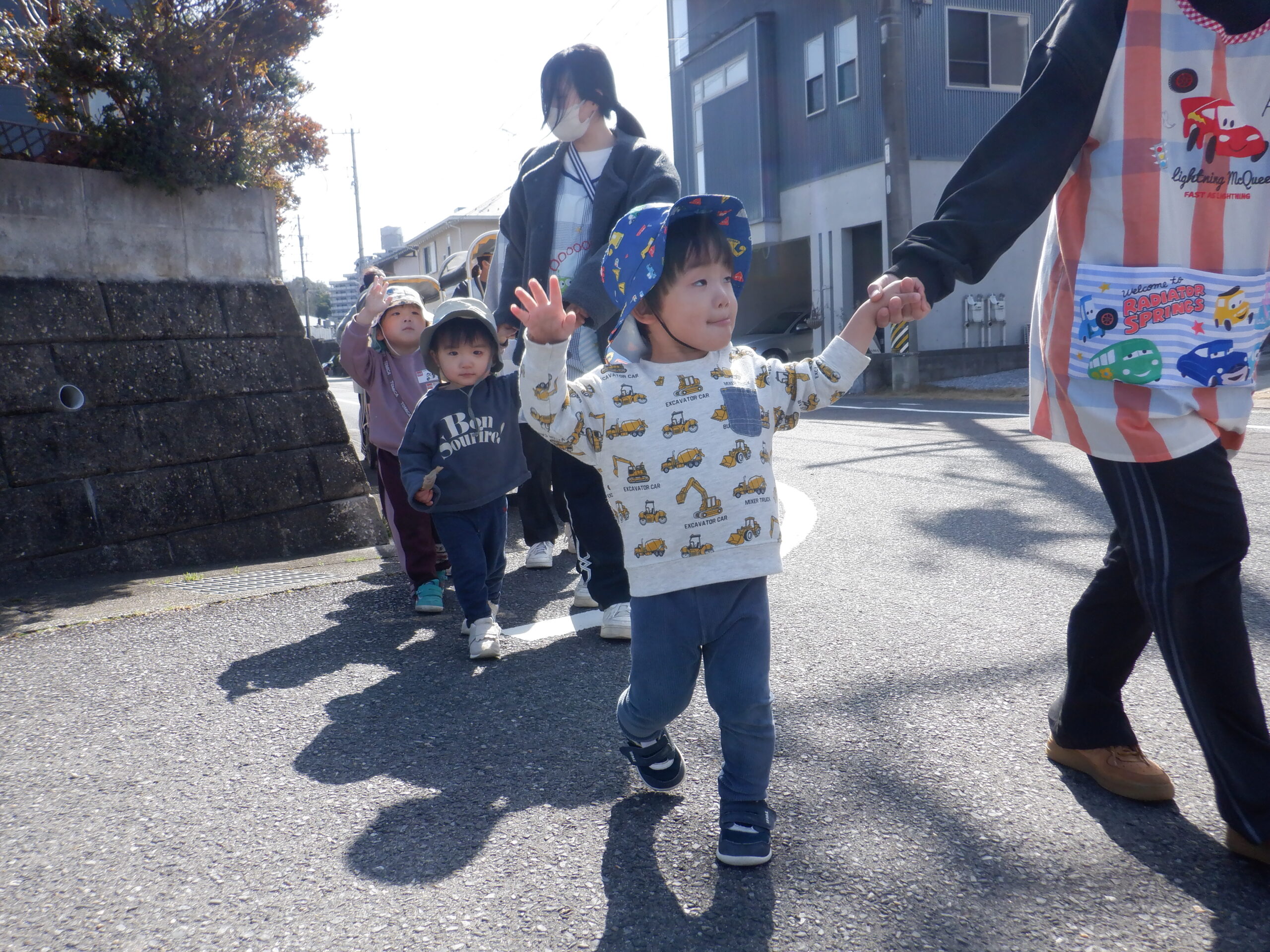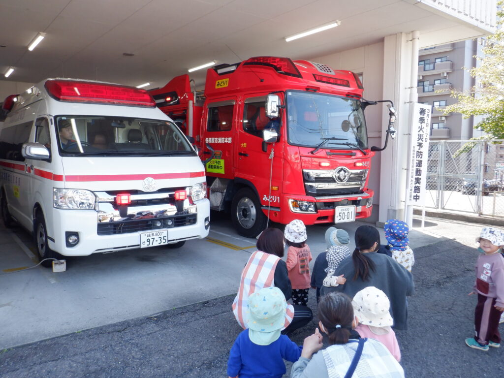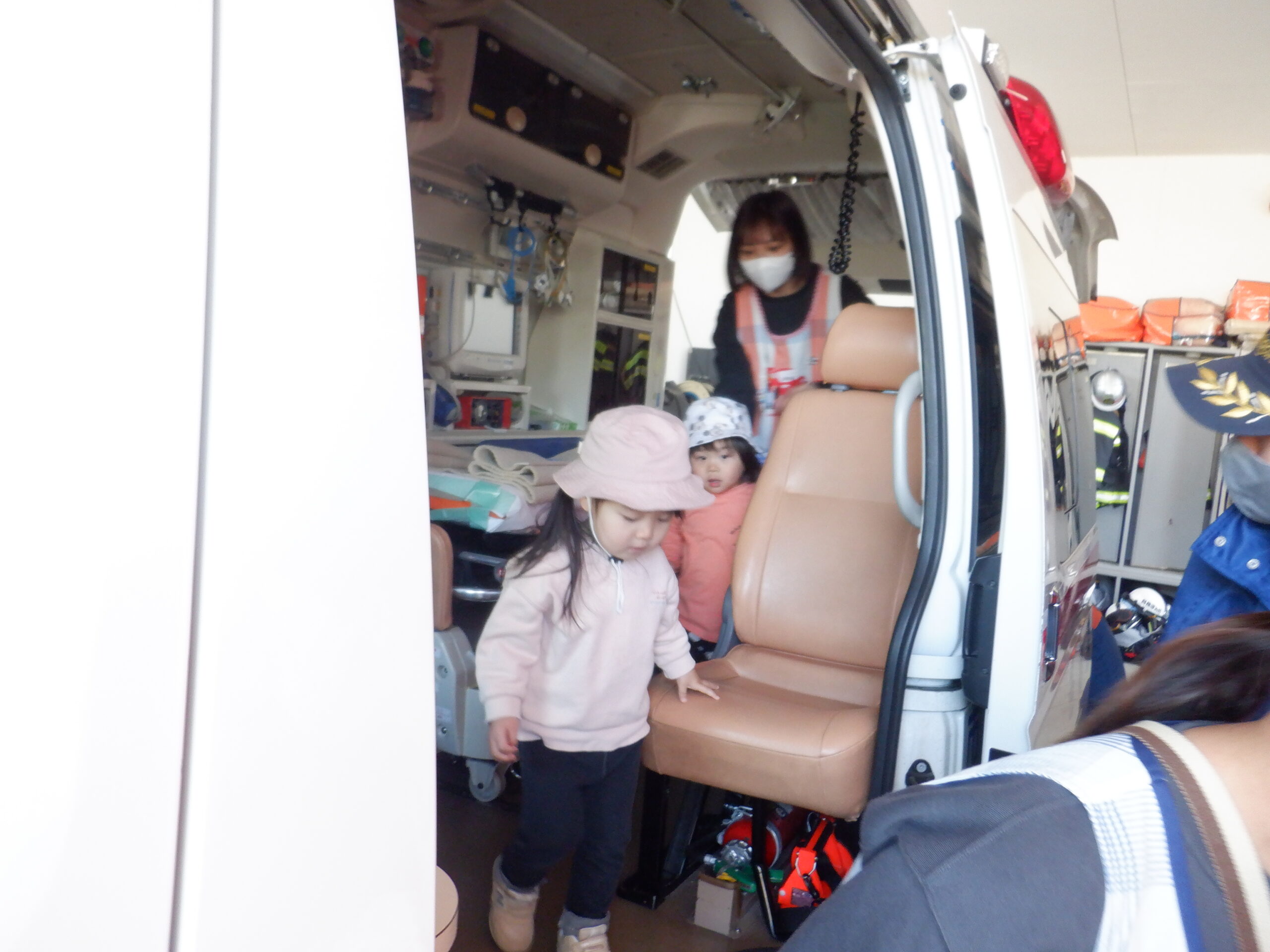 遠足(3歳未満児) 2026年3月11日 最終更新日時 : 2026年3月11日 unumaeast 今日は3歳未満児達の遠足でした。りす・ひよこ組は消防署の方まで行きました。普段なかなか見ることのできない消防車、救急車の中を見せて頂きました。皆大興奮で見ていました。うさぎ組さんは、「鵜沼台中央公園」まで行きました。園より広く、違う遊具に目を輝かせながら、すべり台、ブランコで遊びました。しっぽ取りや、追いかけっこなどをして遊び、途中から石拾いをして積んで遊びました。