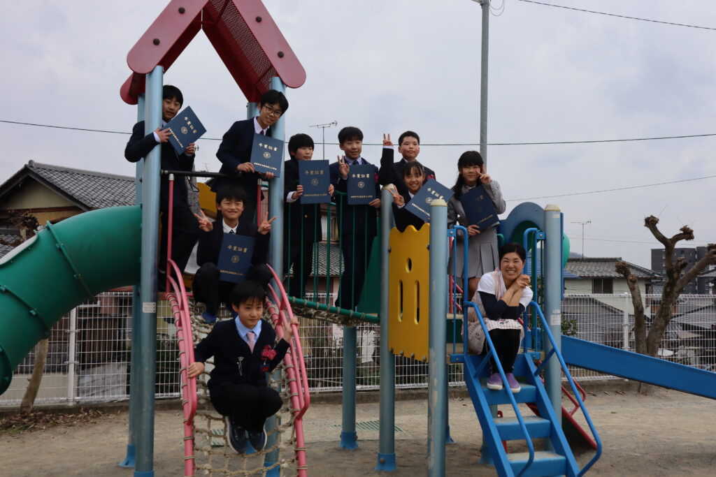 今日小学校の卒業式を終えた卒園児たちが保育所に遊びに来てくれました。
