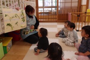 二人のお母さんが見守るなか、さっと靴を脱ぎ荷物をもって