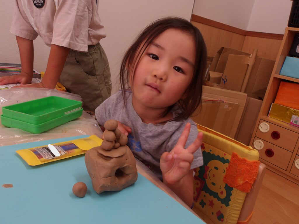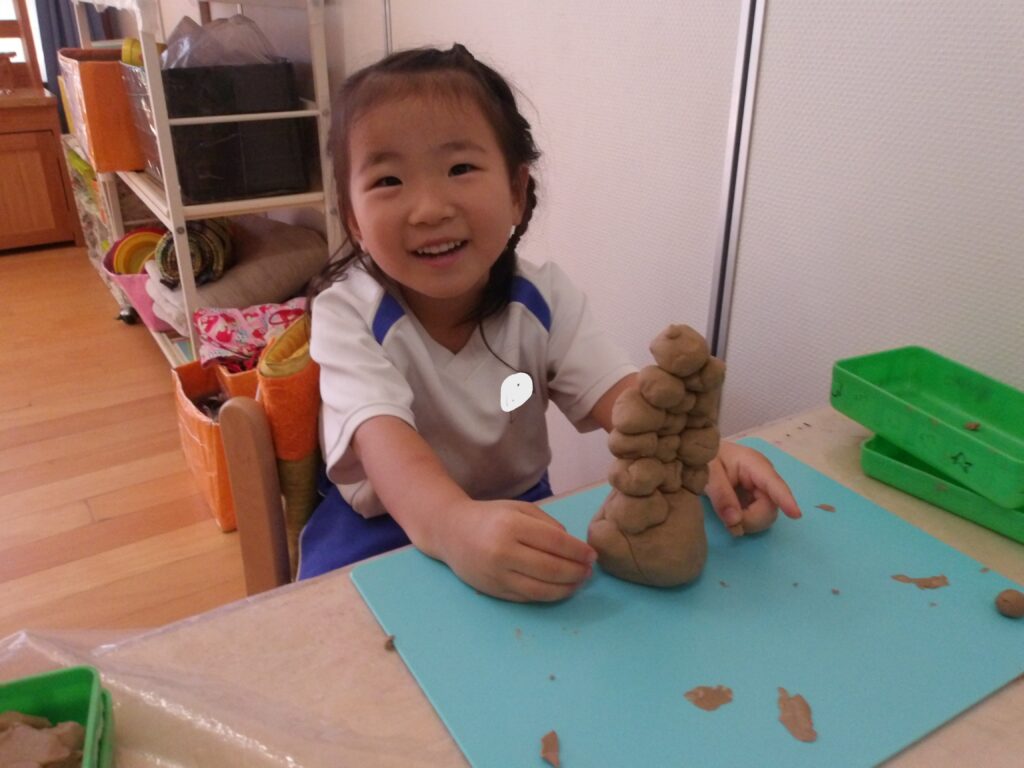 粘土でお団子を作る練習もしました。その時には、お団子を飾る台を作る子もいましたよ。