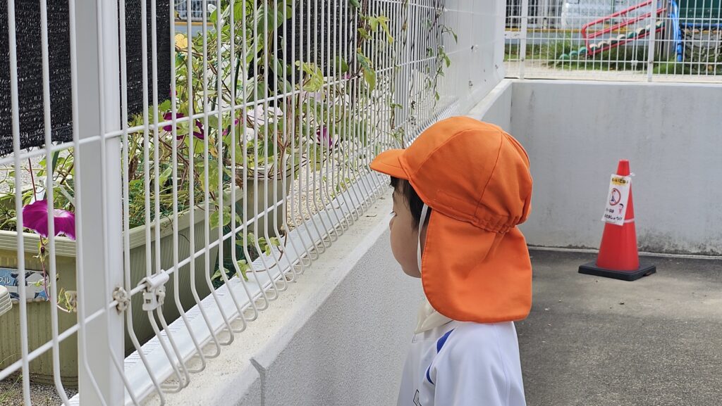 きりん組さんのさつまいもの葉っぱが元気にお出迎え。