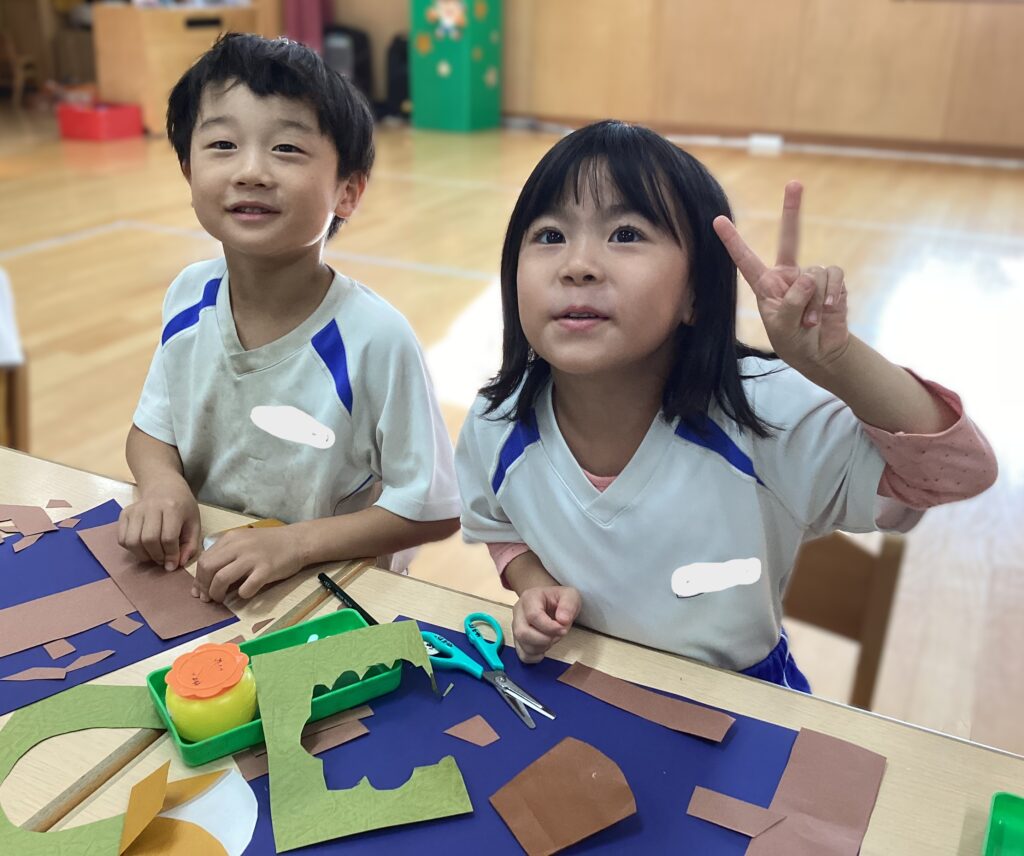 制作遊びを楽しんでいるらいおん組のお友だち。