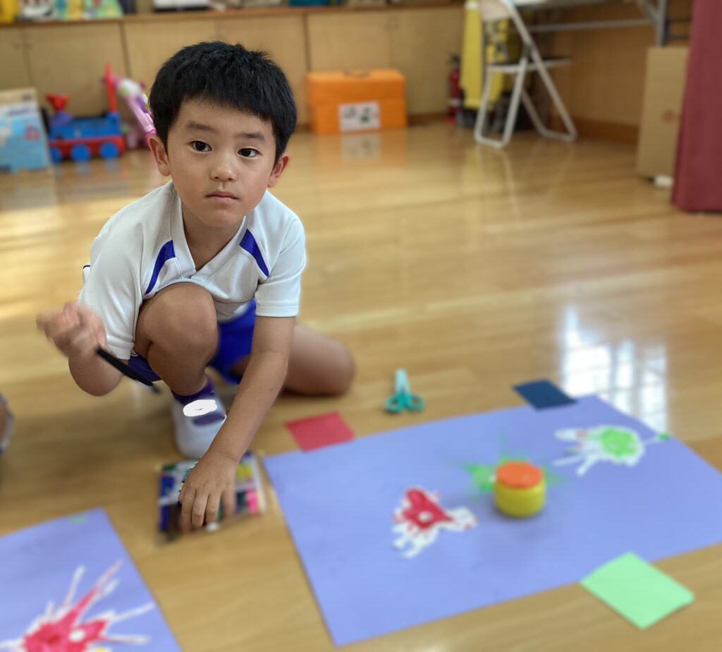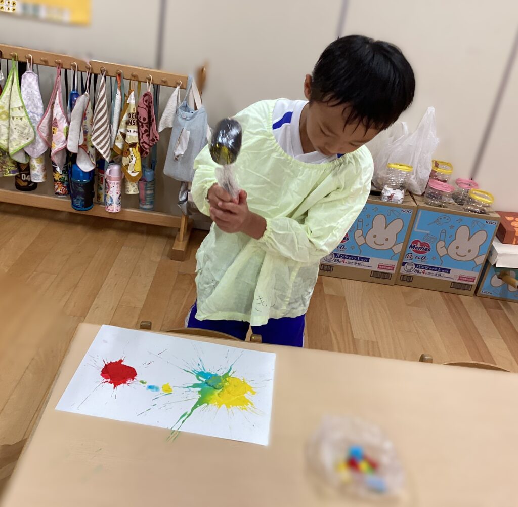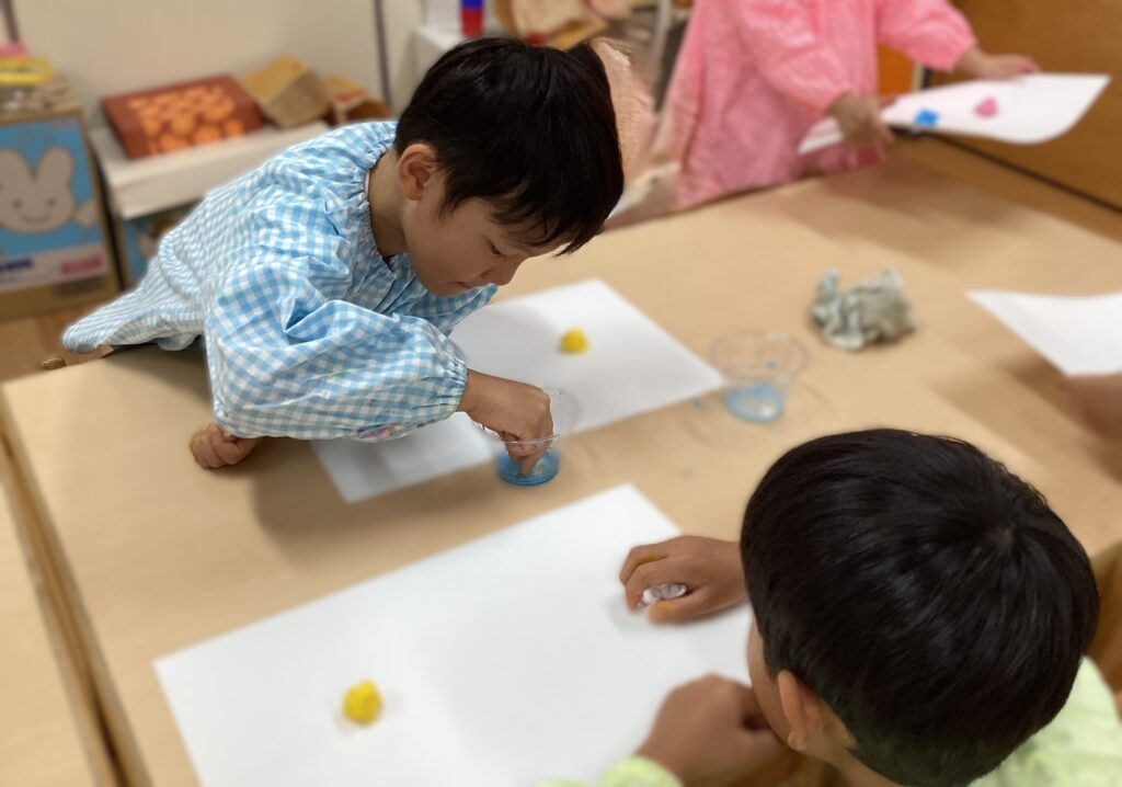 同じ技法でも全く違うものが出来上がっていく様子に、「どれも素敵だね!」「それ、おもしろい!」とお互いの作品を見せ合い、伸び伸びと表現していますよ。