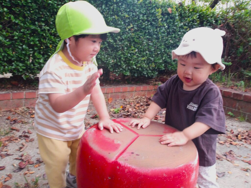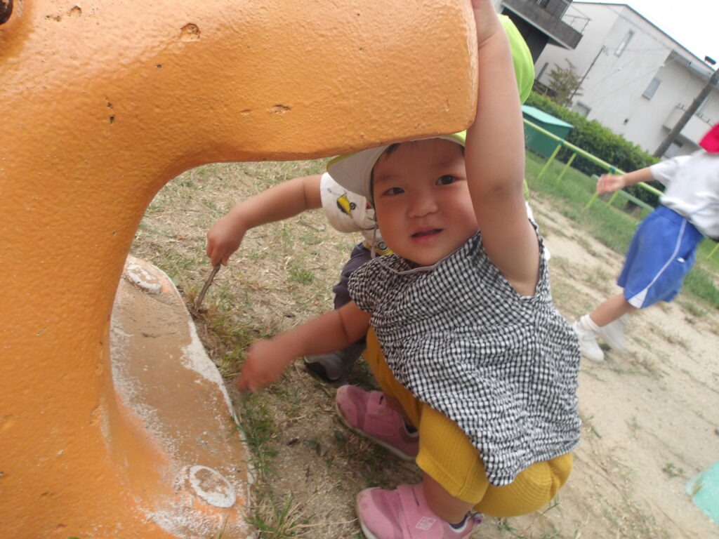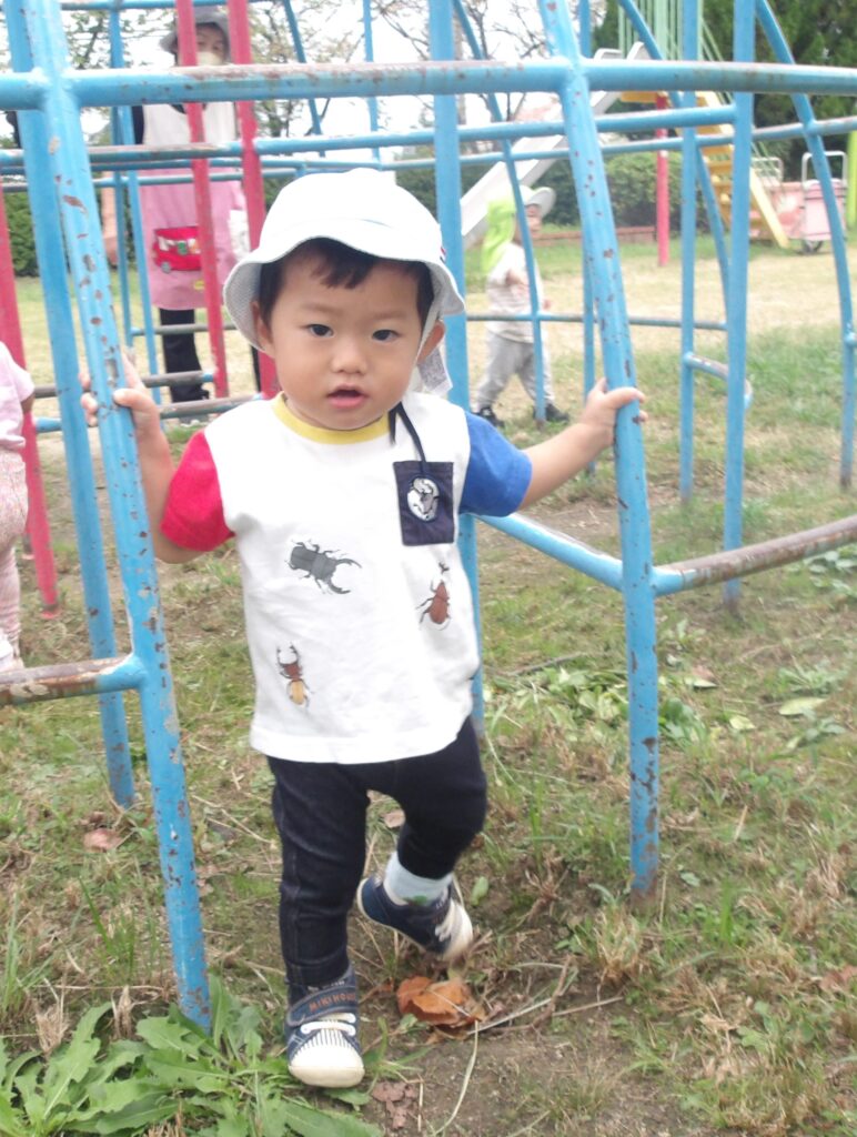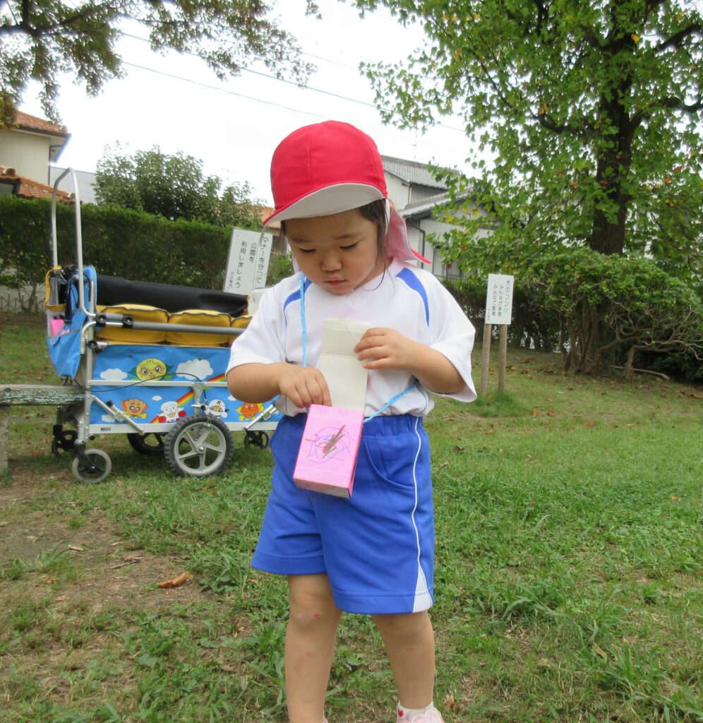 ひよこ、うさぎ組さんは平池公園に出掛けましたよ。秋の自然物や虫に触れたり、好きな遊具を見つけたりして楽しむことができました。