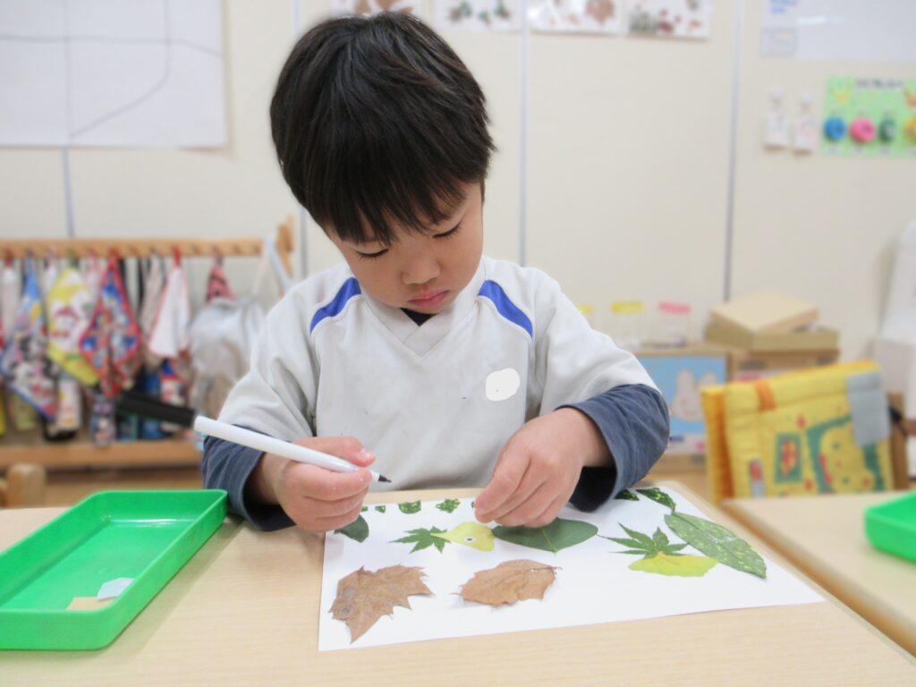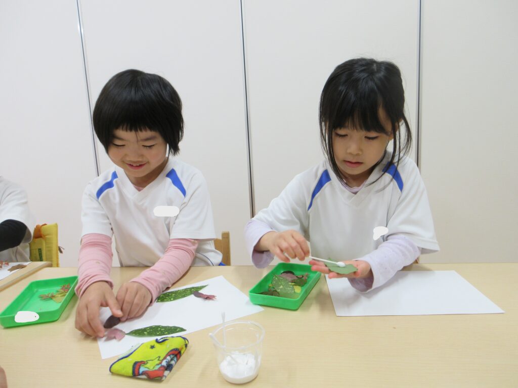 また、先日は環境サポーターさんにお越しいただき、葉っぱの水族館を作りました。表現力豊かに制作した水族館は、今にも動き出しそうな魚たちでいっぱいでしたよ。
