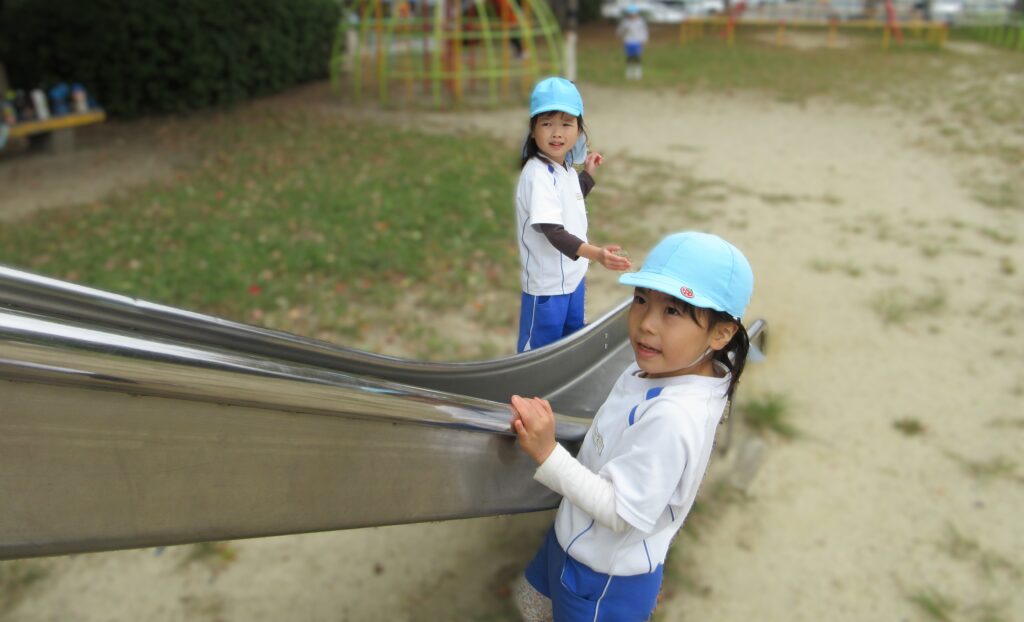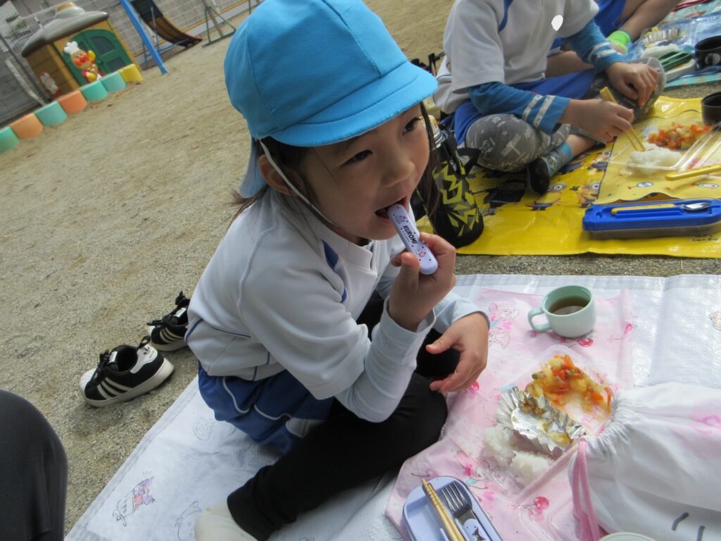 どうしたら園庭で食べられるかな?と考え、園長先生や給食の先生に相談し、実現しました。