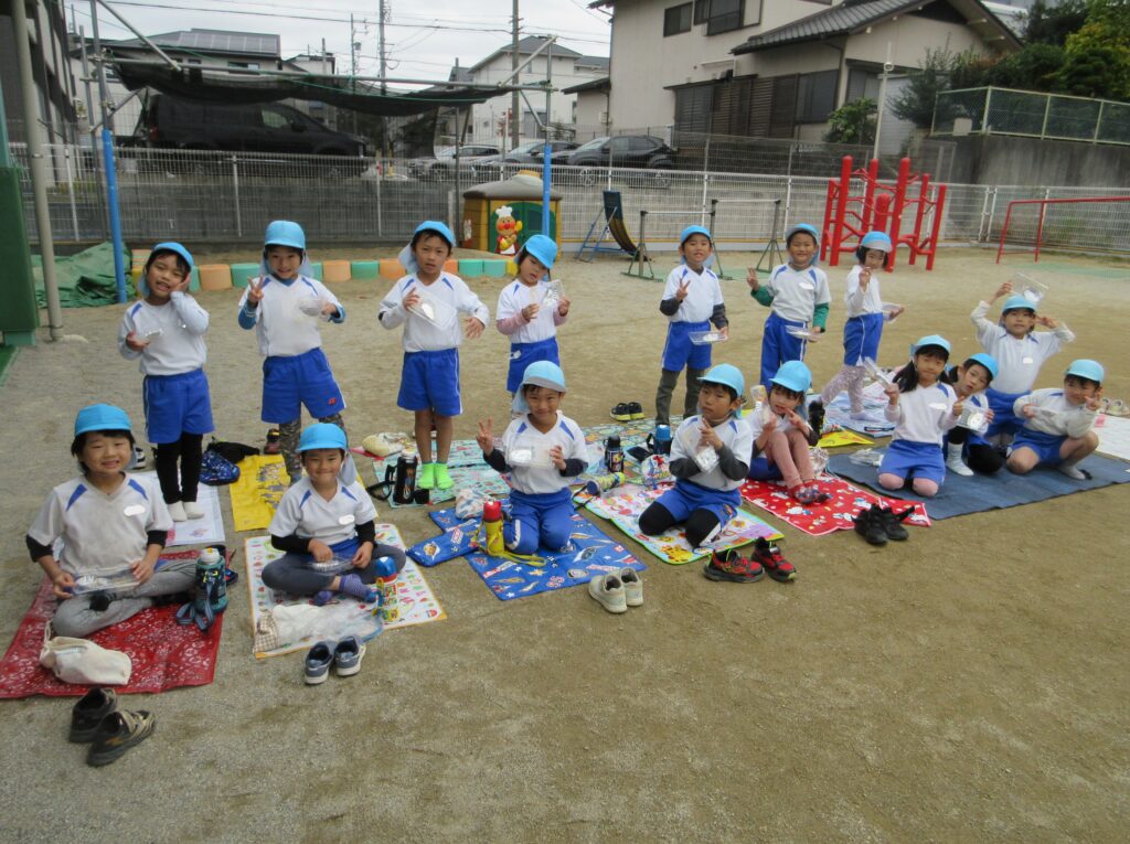 らいおん組さんのやりたいことリスト「園庭で給食が食べたい。」