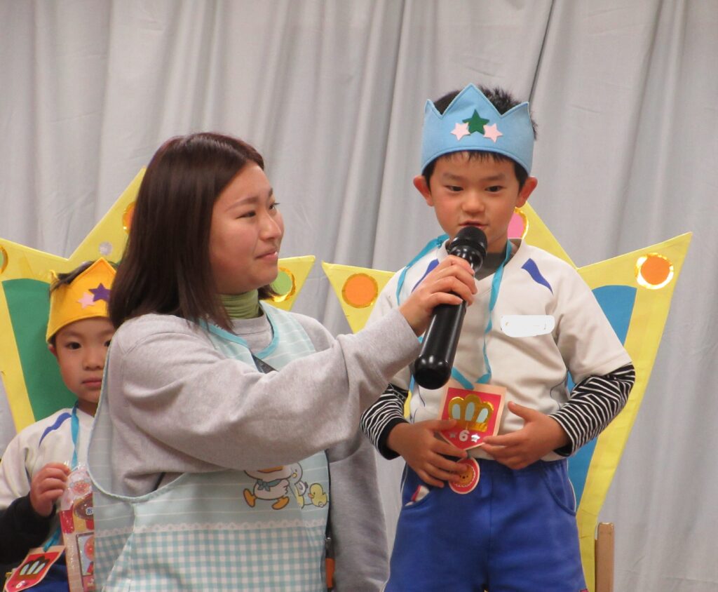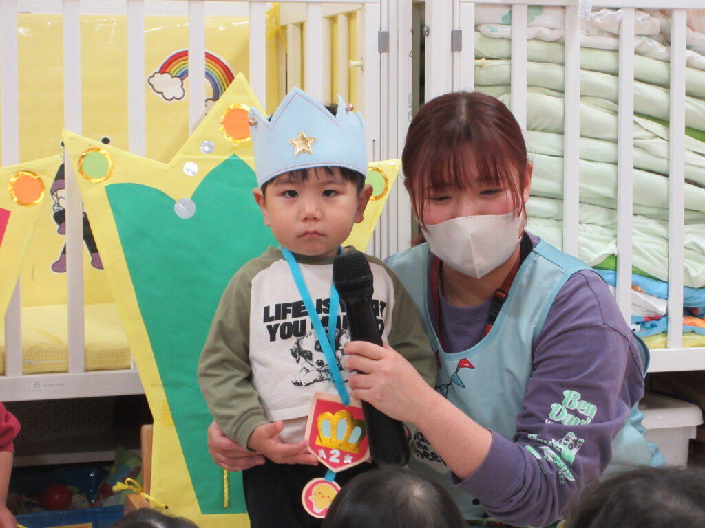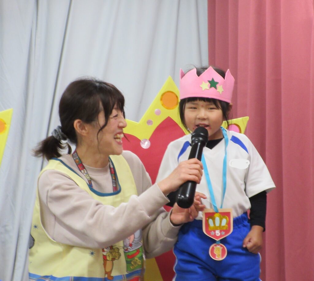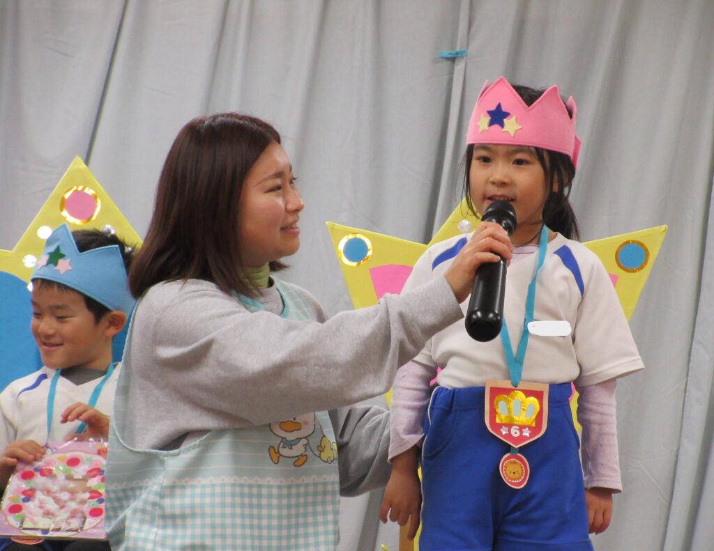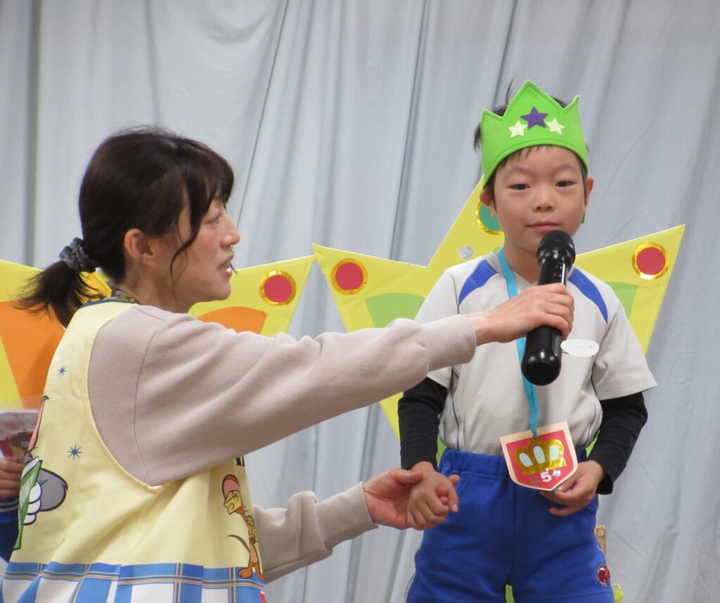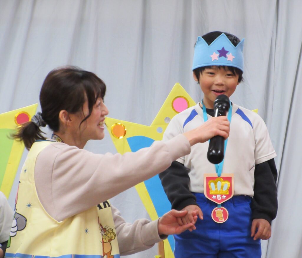 インタビューでは、少し緊張している様子も見られましたが、お友だちからの「おめでとう!」という言葉にとても喜ぶ姿が見られましたよ。
