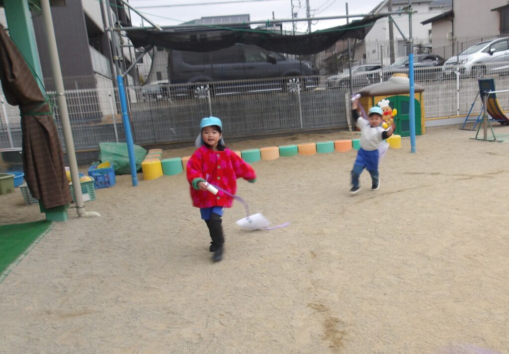 1月は「凧あげ」や「かるた」など、お正月遊びを楽しみました。