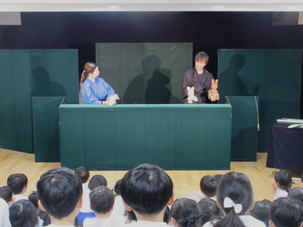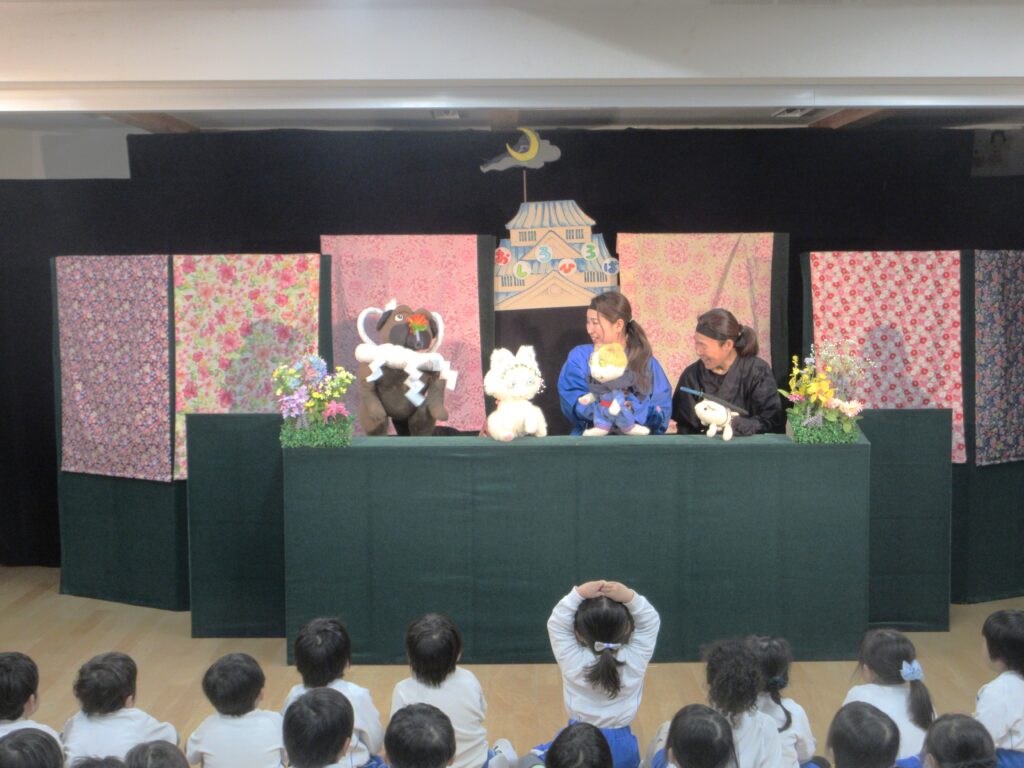 2月12日(木)は、お家の方(保護者会)からのプレゼント、人形劇団「あっけらかん」さんによる人形劇を観劇しました。