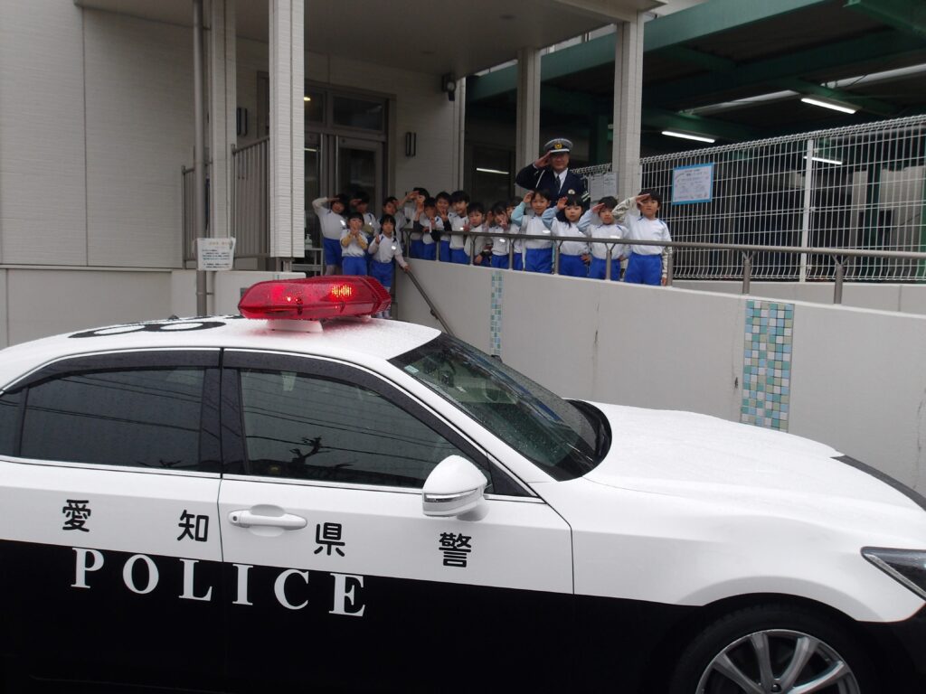 最後はパトカーと一緒に写真を撮らせてもらい、大喜びの子どもたちでした。